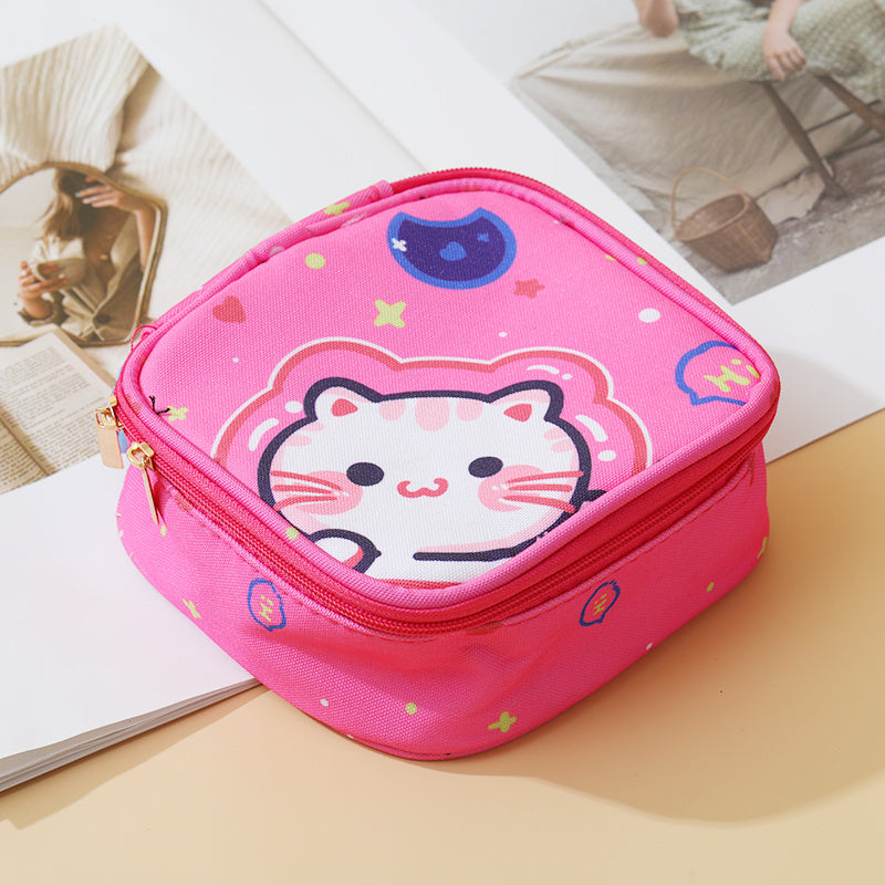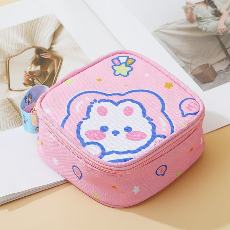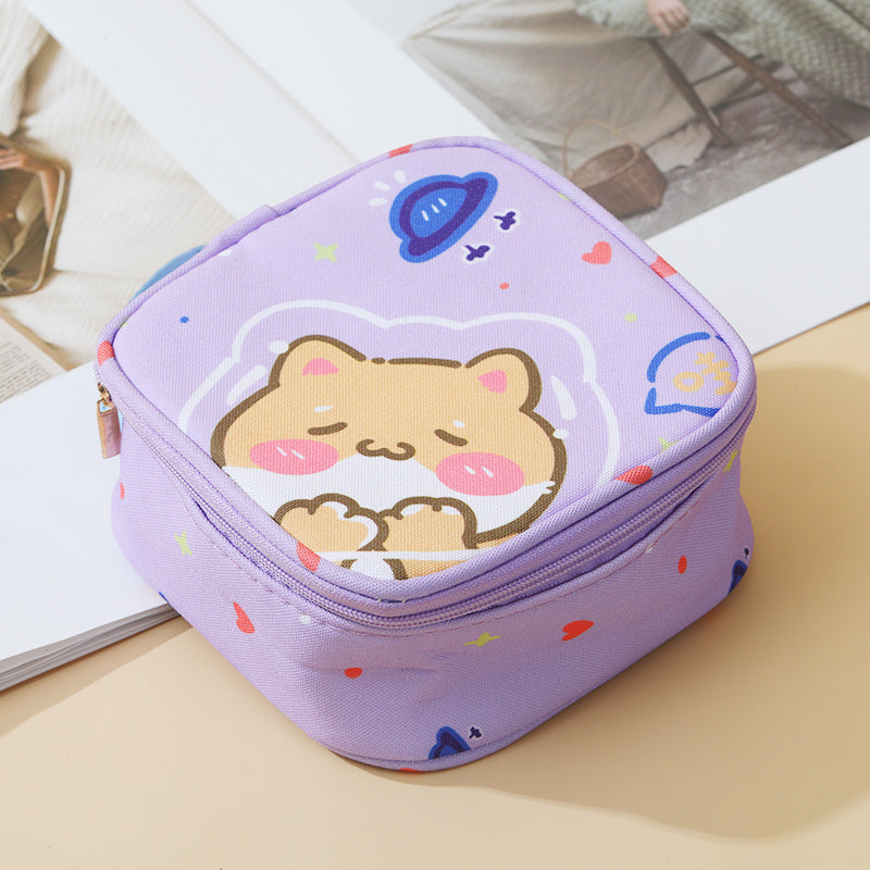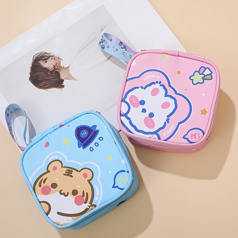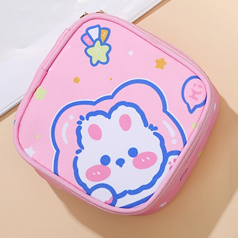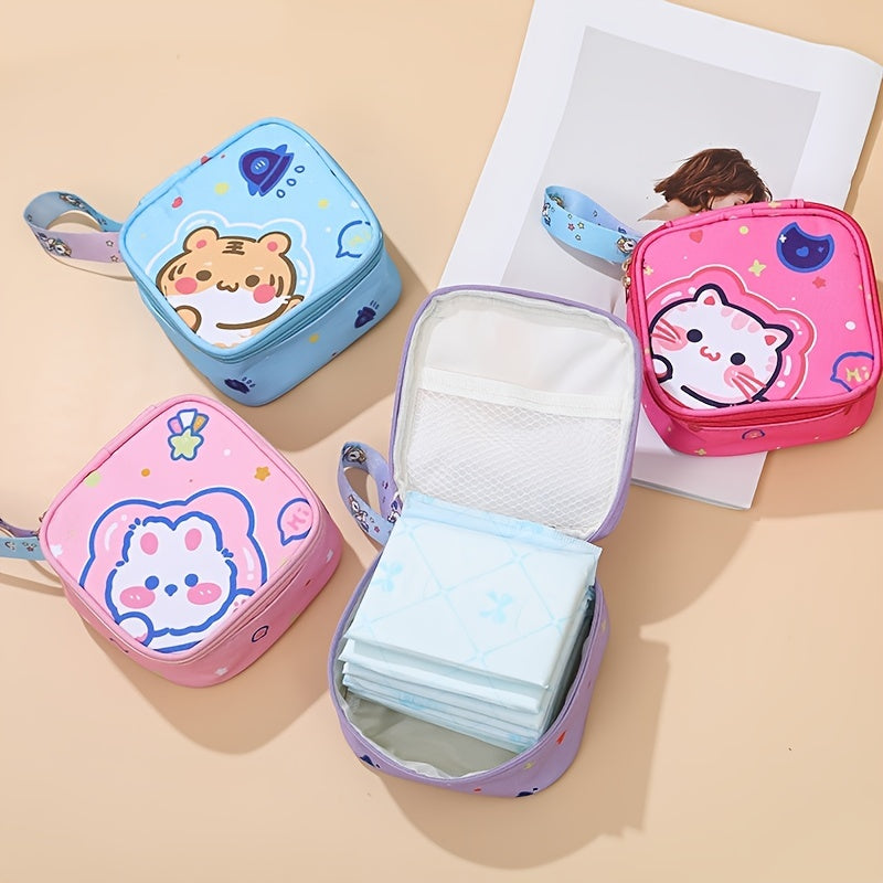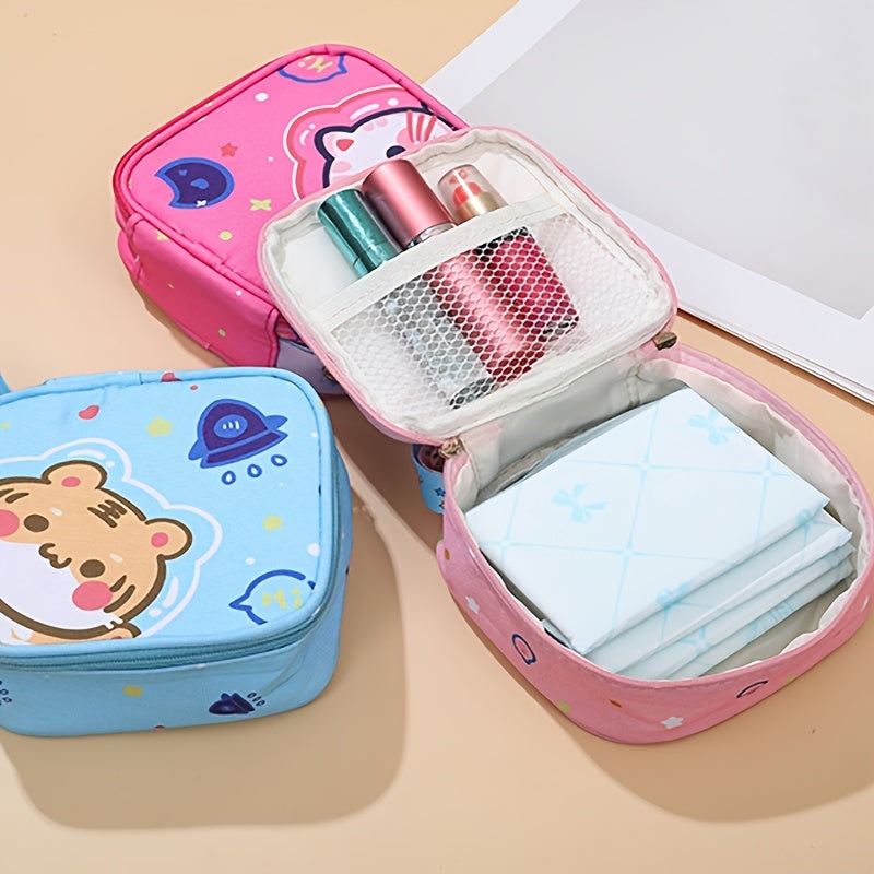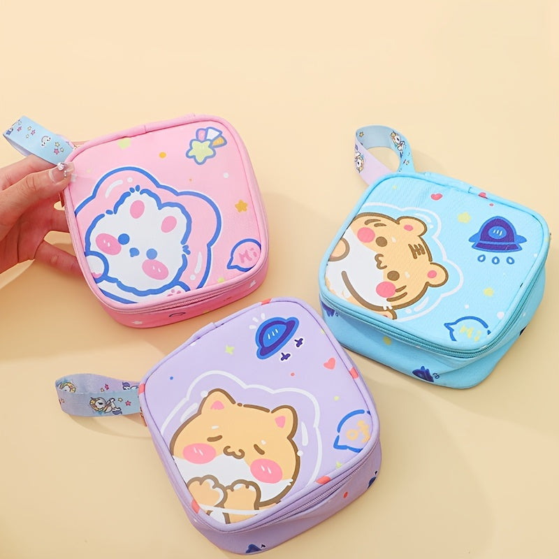 Cartoon Sanitary Napkin Storage Bag, Portable Zipper Storage Bag For Keys & Lipstick