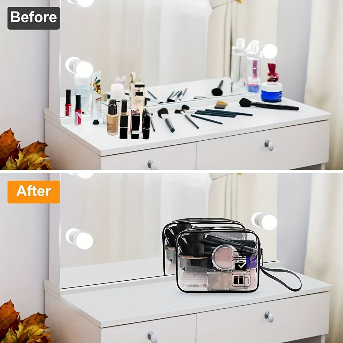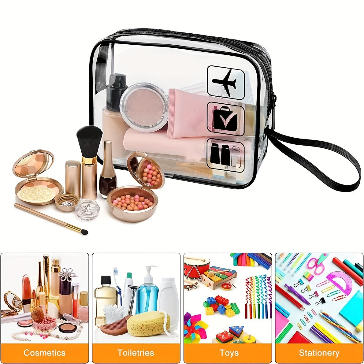 Transparent for Easy Access-The clear travel bag with large top opening allows you easy access what you need. 2 pack is perfect for different storage needs. Perfectly suits travel bottles, also great to store cosmetics, toiletries, toys and small stuffs.