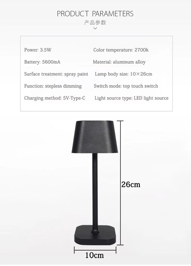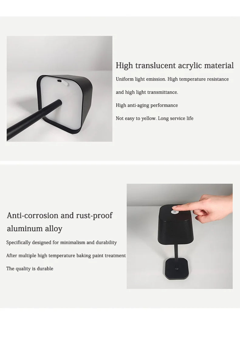 Cordless LED Metal Table Lamps For Indoor Bar Hotel Camping Light Touch Rechargeable Lampada da tavolo Acrylic Decor wireless