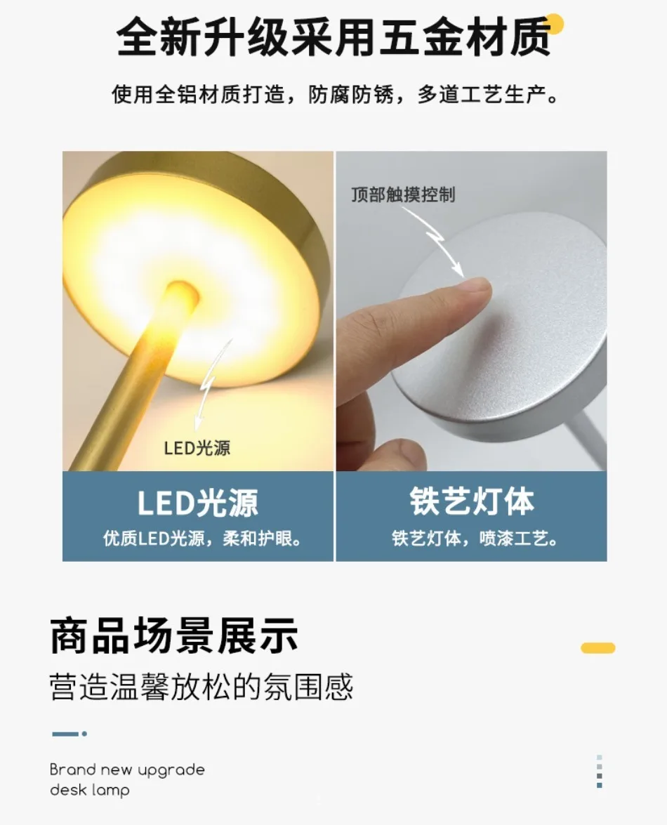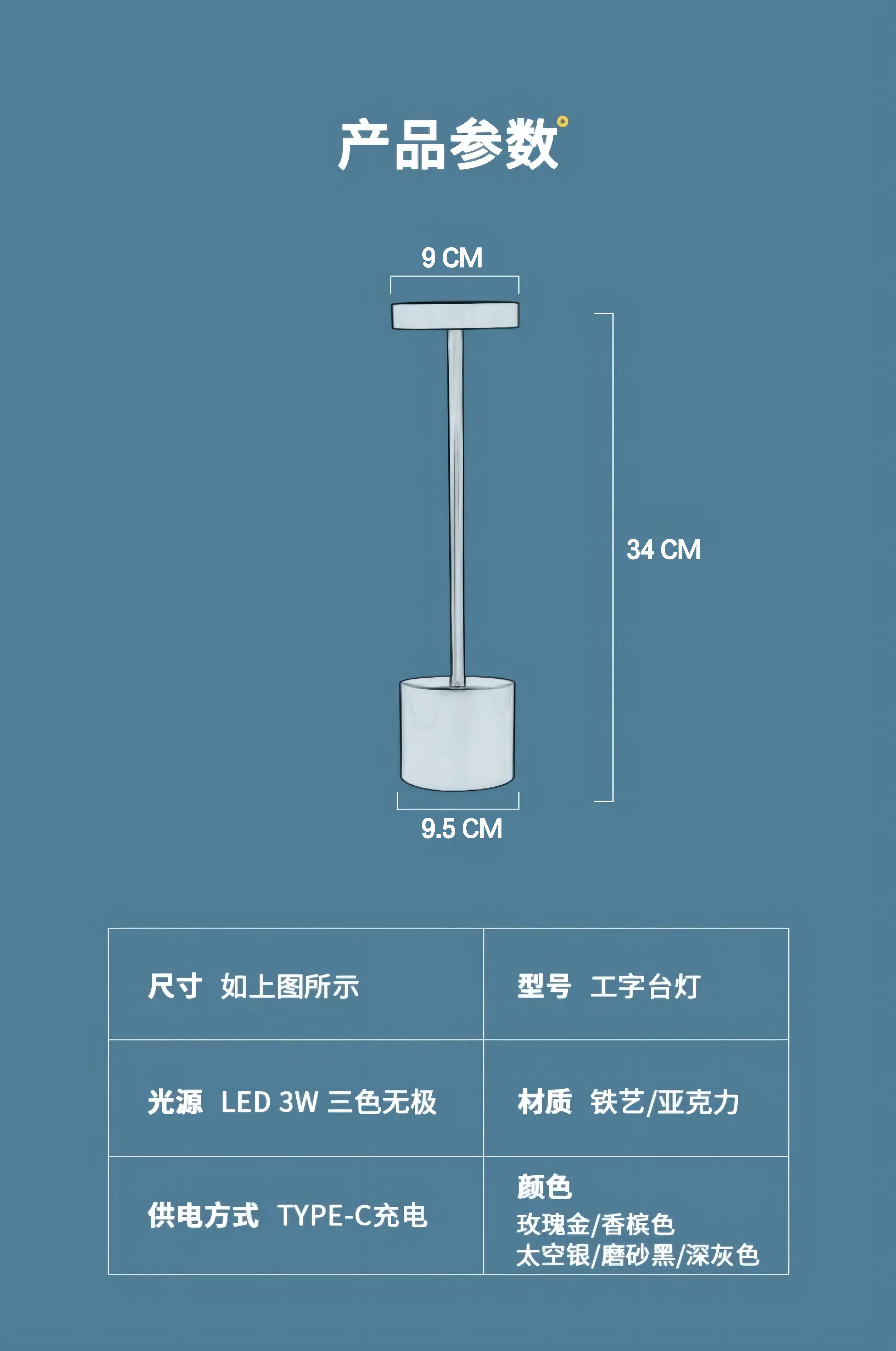 Product Name: Portable Metal Rechargeable Cordless LED Table Lamp