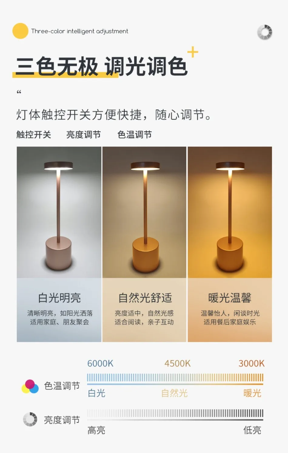 【Portable Table Lamp】This perfect Table lamp will easily update your space, with its built-in battery, you The lights can be placed anywhere, in bedrooms, study rooms, offices, living rooms, dining rooms, bars, cafes, hotel rooms, etc.