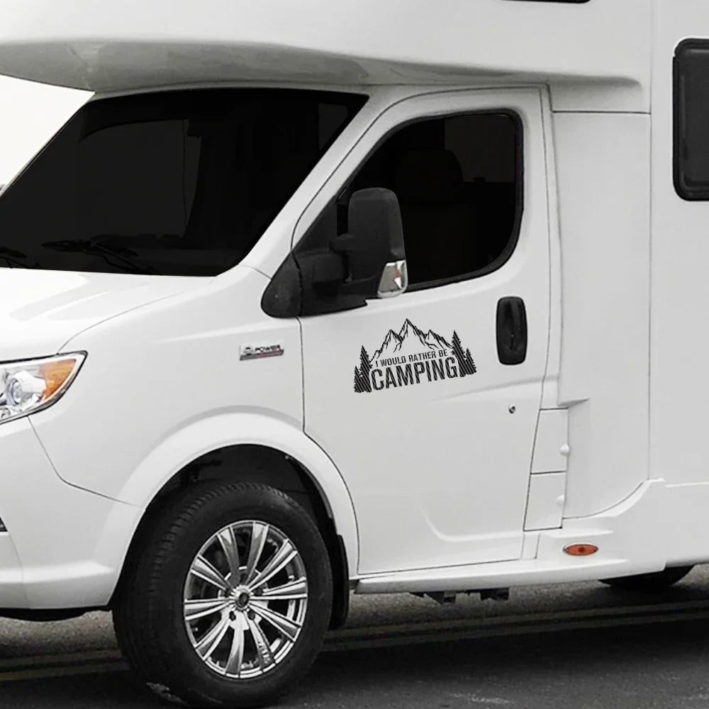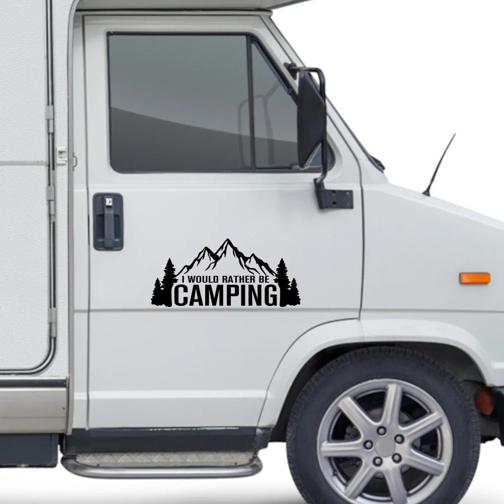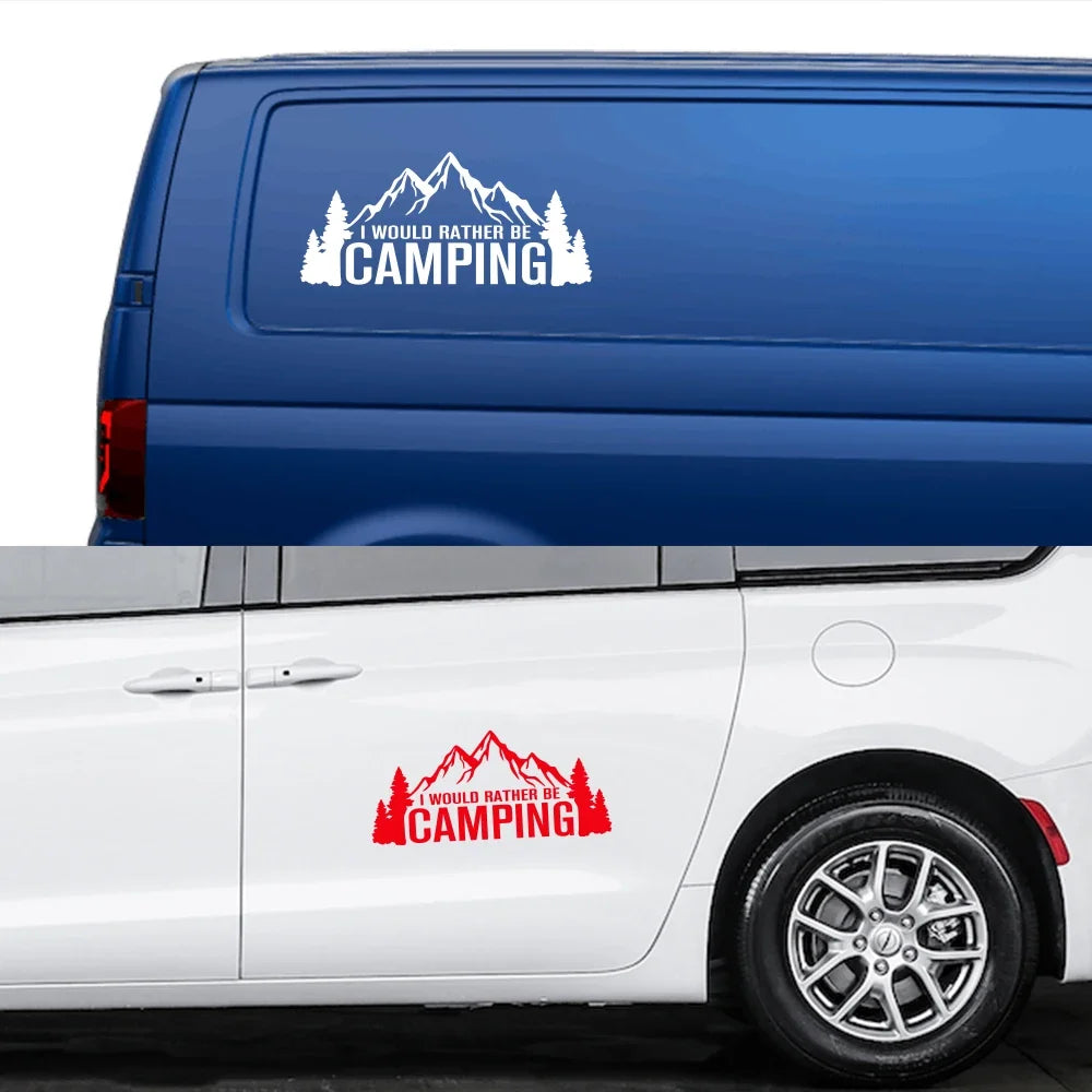 Creative I Would Rather Be Camping Stickers Car Decor Decal for Van Camping Rv Caravan Motorhome Caogo Auto Tuning Accessories