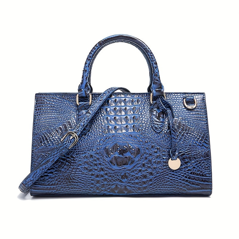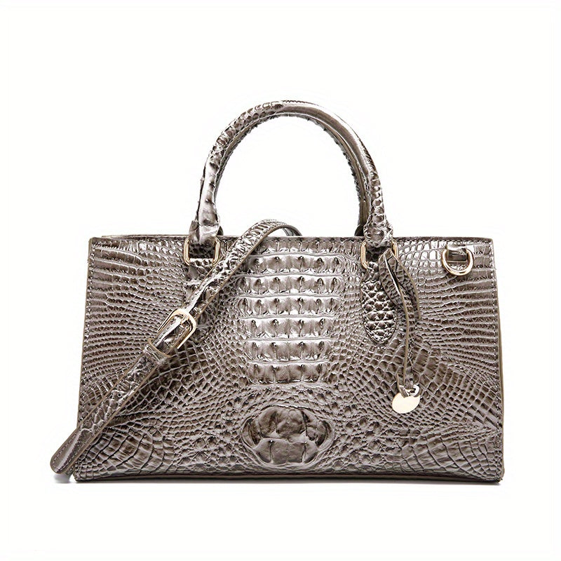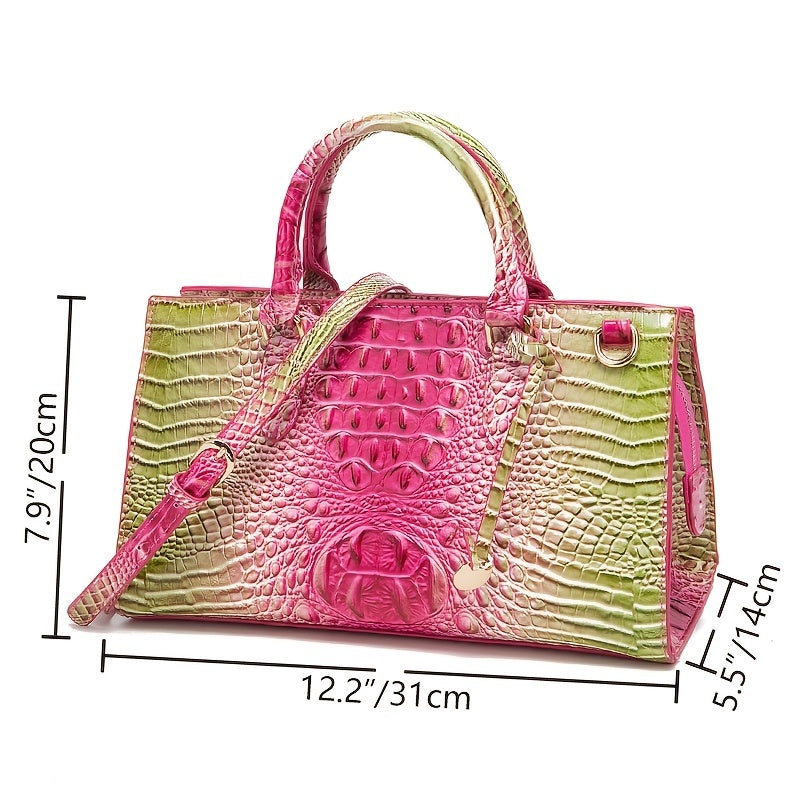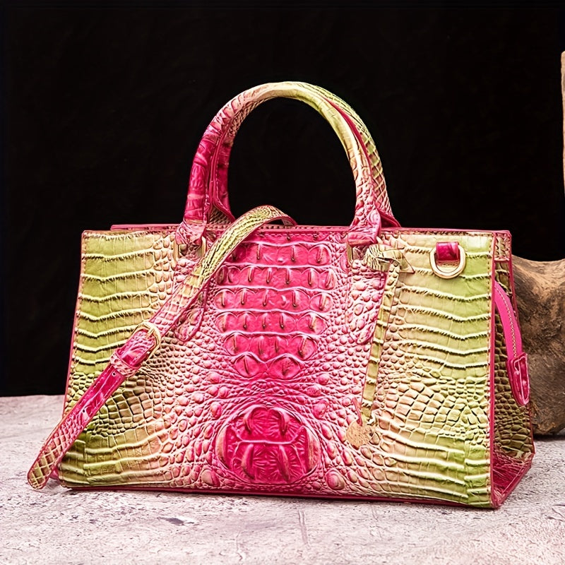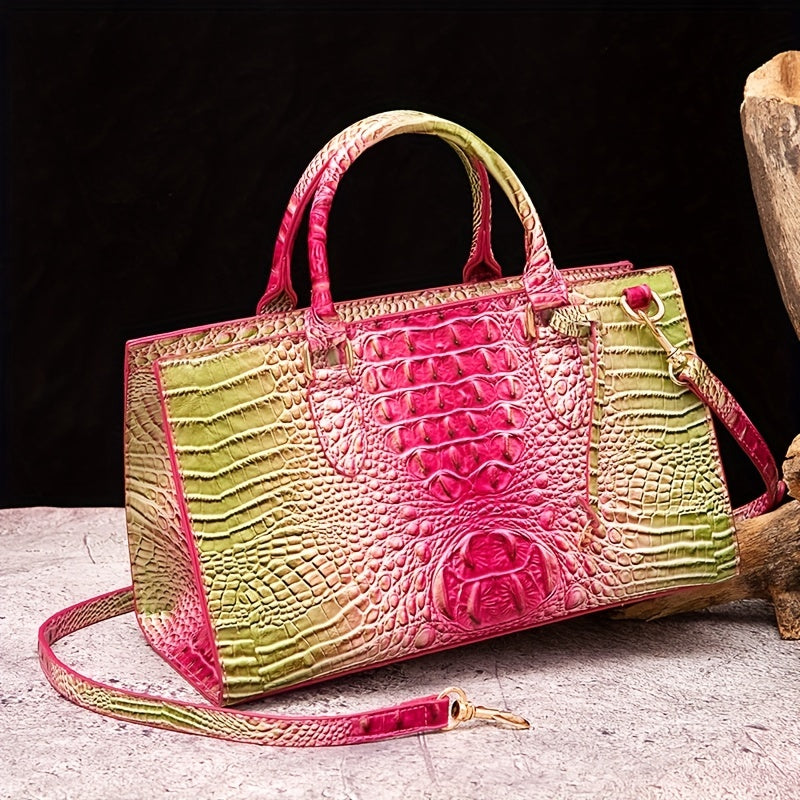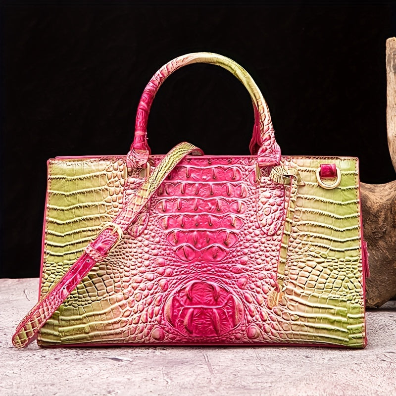 Crocodile Embossed Handbag, Ombre Top Handle Purse, Women's Shoulder Bag With Adjustable Purse