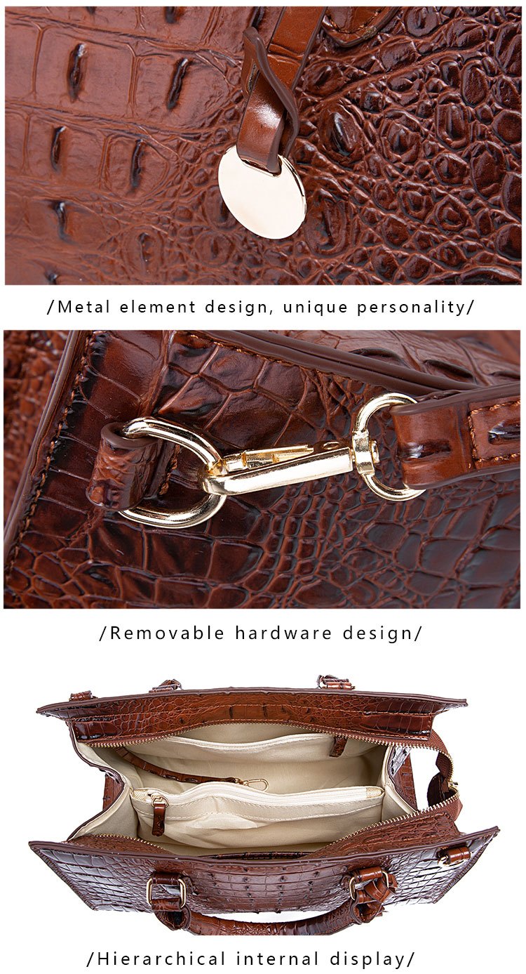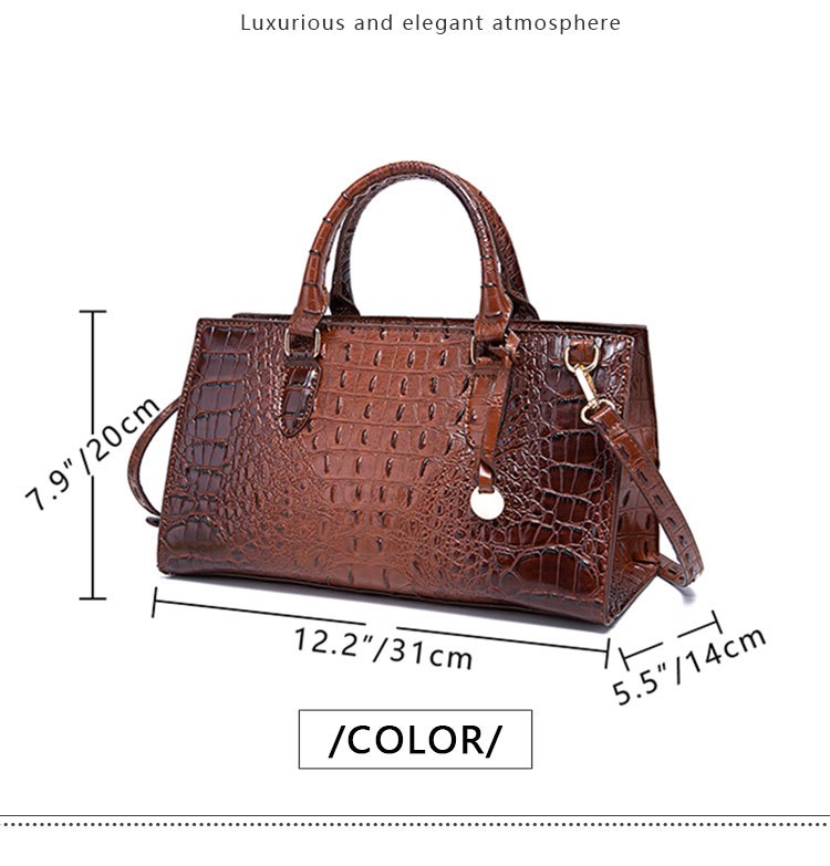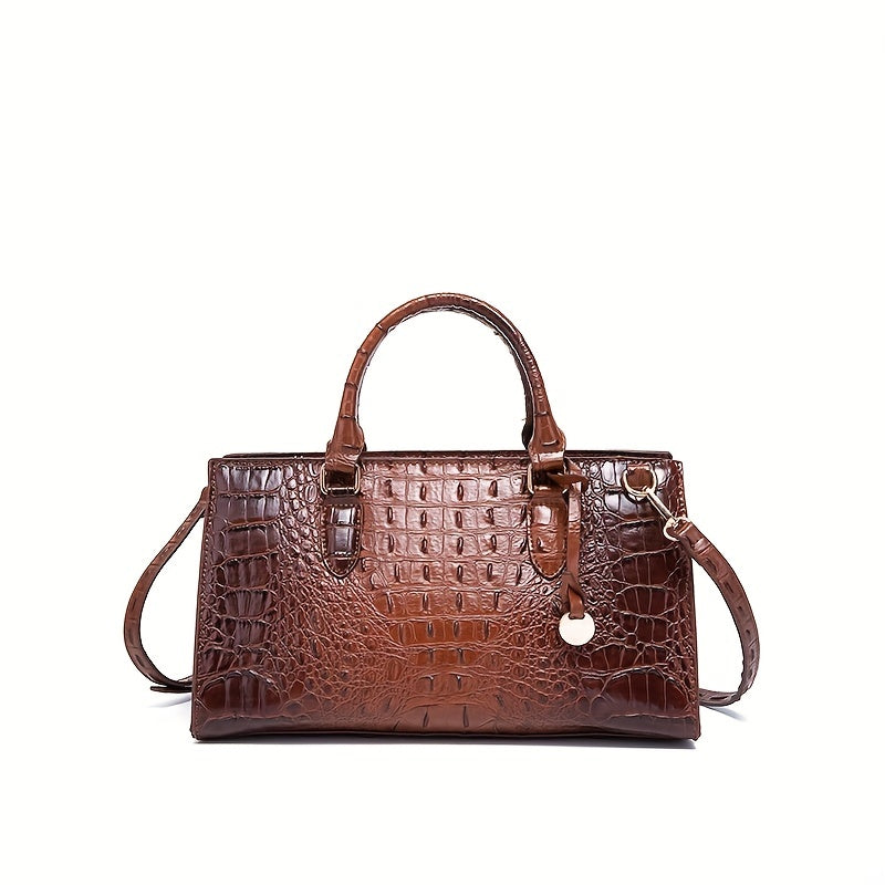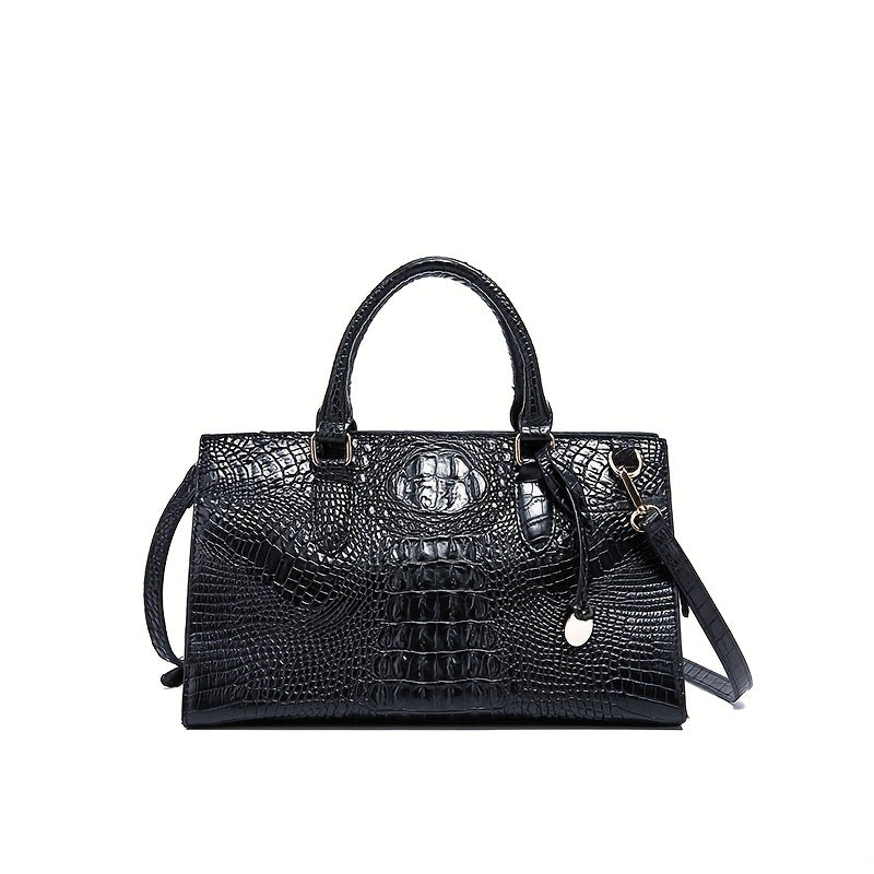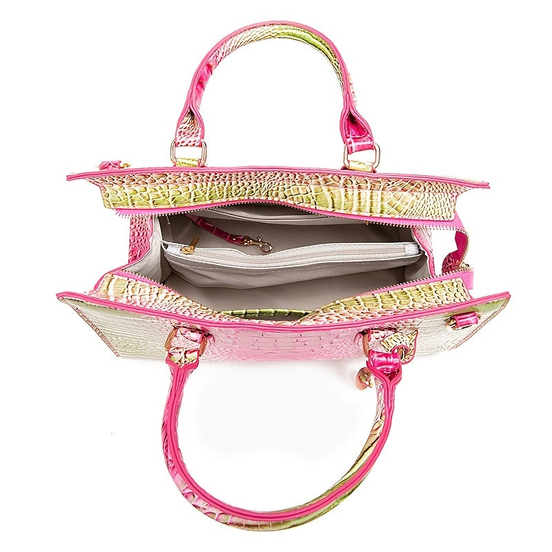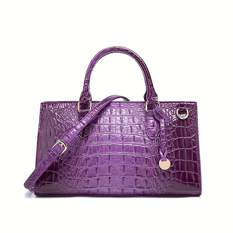 Crocodile Embossed Handbag, Ombre Top Handle Purse, Women's Shoulder Bag With Adjustable Purse