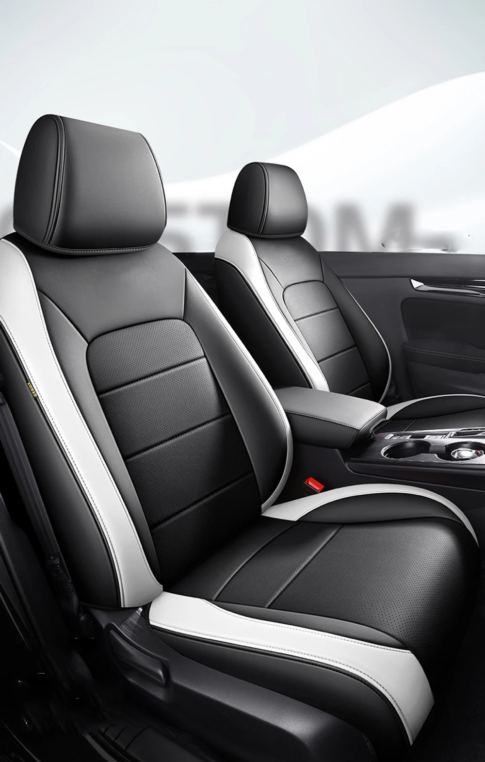 100% Brand New : Full set custom seat cover includes front and rear seat covers ,headrest covers and airbag cutouts