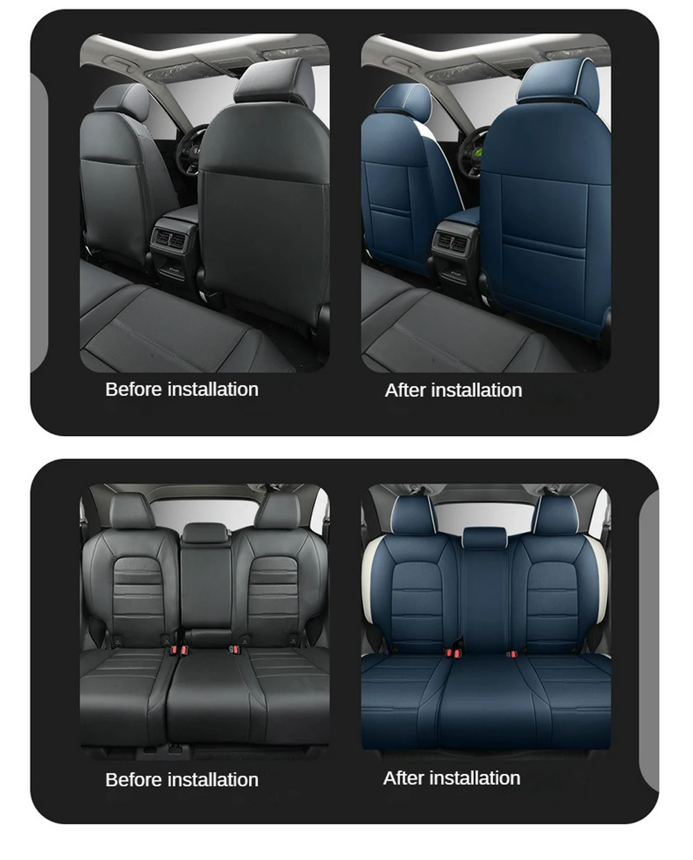 These full-cover seat covers are strictly customized according to the original seats sizes, accurately covering the original seats, protecting the original seats from wear, stains, and animal hair, and giving your car interior a new look.