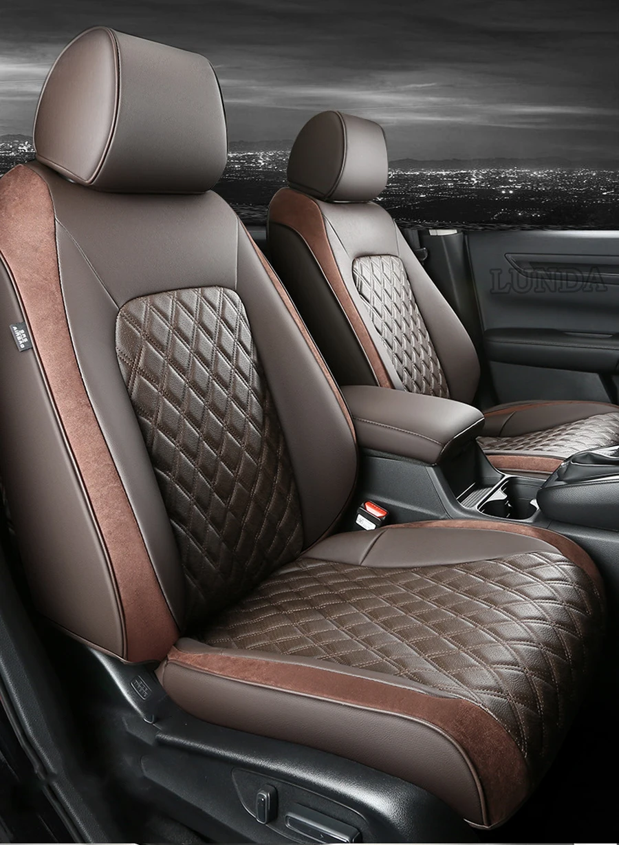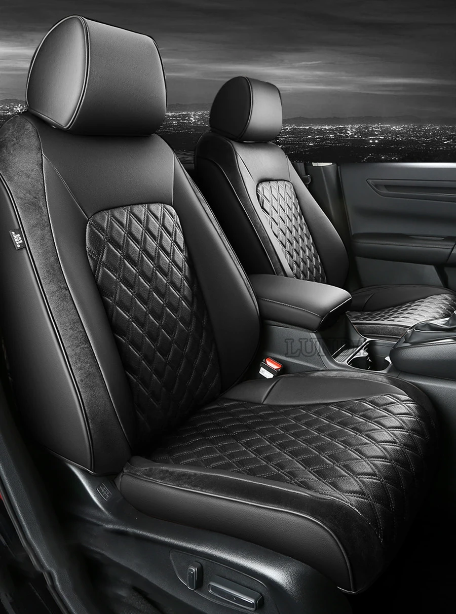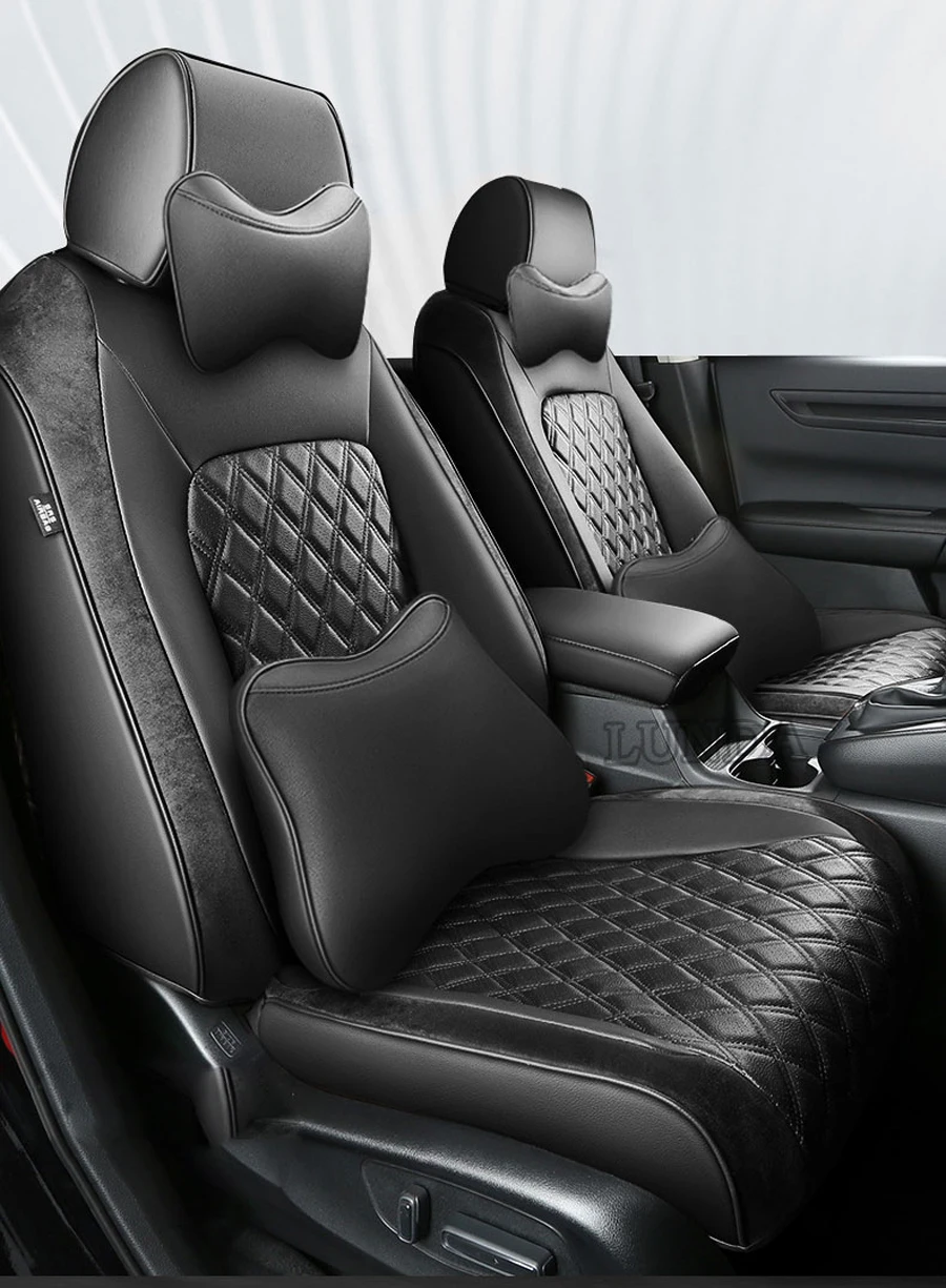 100% Brand New : Full set custom seat cover includes front and rear seat covers ,headrest covers and airbag cutouts