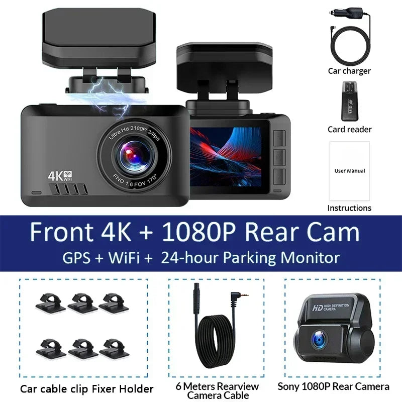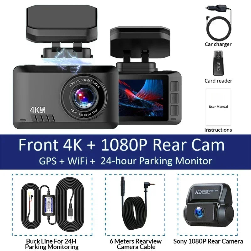 Dash Cam Dual Lens 4K Recording camera Car DVR Built-In GPS WiFi Night Vision Video Recorder Support 24H Parking car accessories