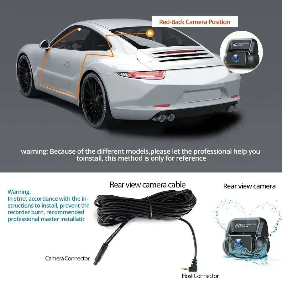 Rear Camera Upgrade: Support max 10 meters cable Rear Camera Add Features: Night Vision, 3840*2160P front Camera, 4K video resolution, WiFi, Built-in GPS tracking