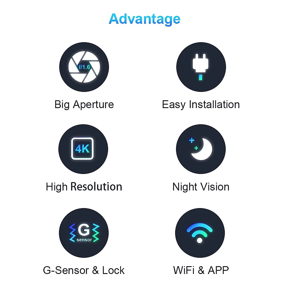 Equipped with Novatek Chip+CMOS Sensor, this dash camera can record high clarity videos up to 2160P/30fps, which can improve image performance in every aspect.