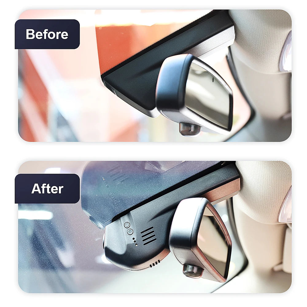 Just remove the original back cover and replace it with our dashcam and it takes a short time to install.