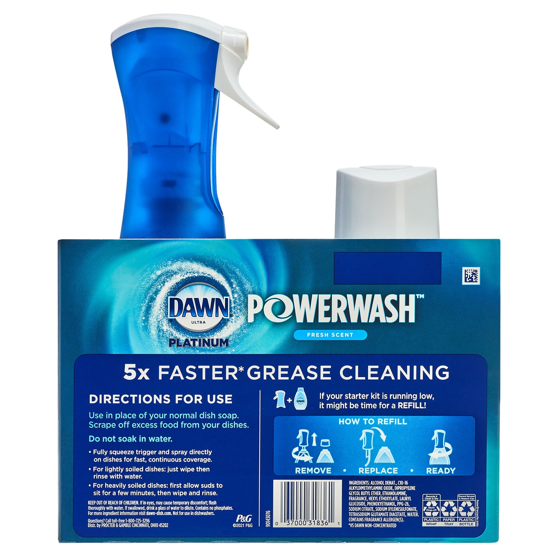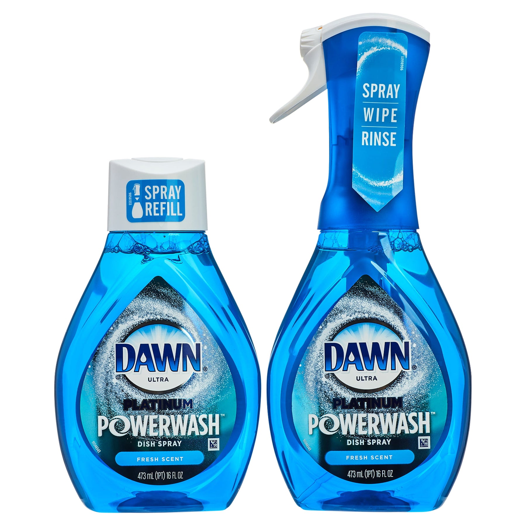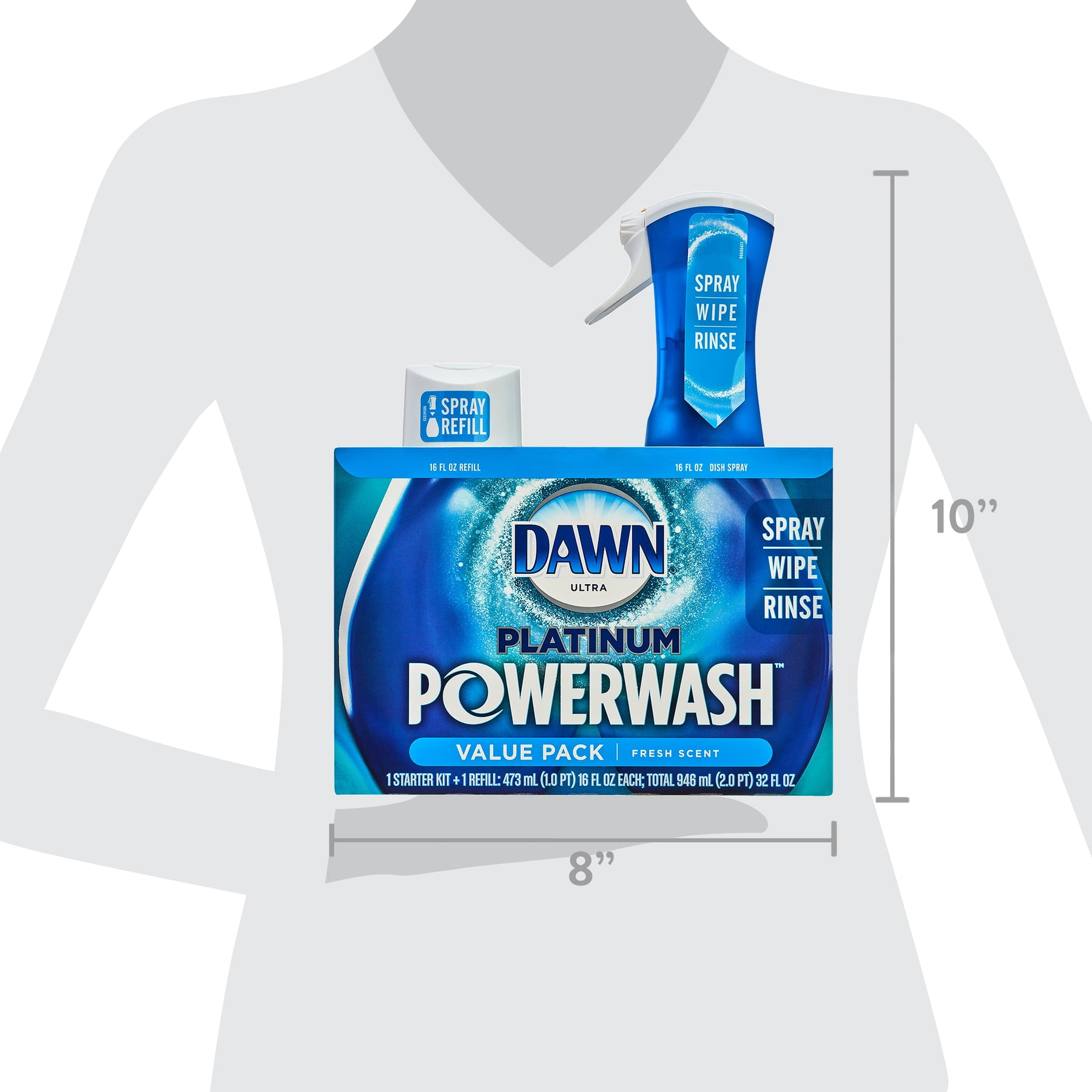 Dawn Platinum Powerwash Dish Spray, Dish Soap, Fresh Scent Bundle, 1 Starter-Kit plus 1 refill, 16 fl oz each: