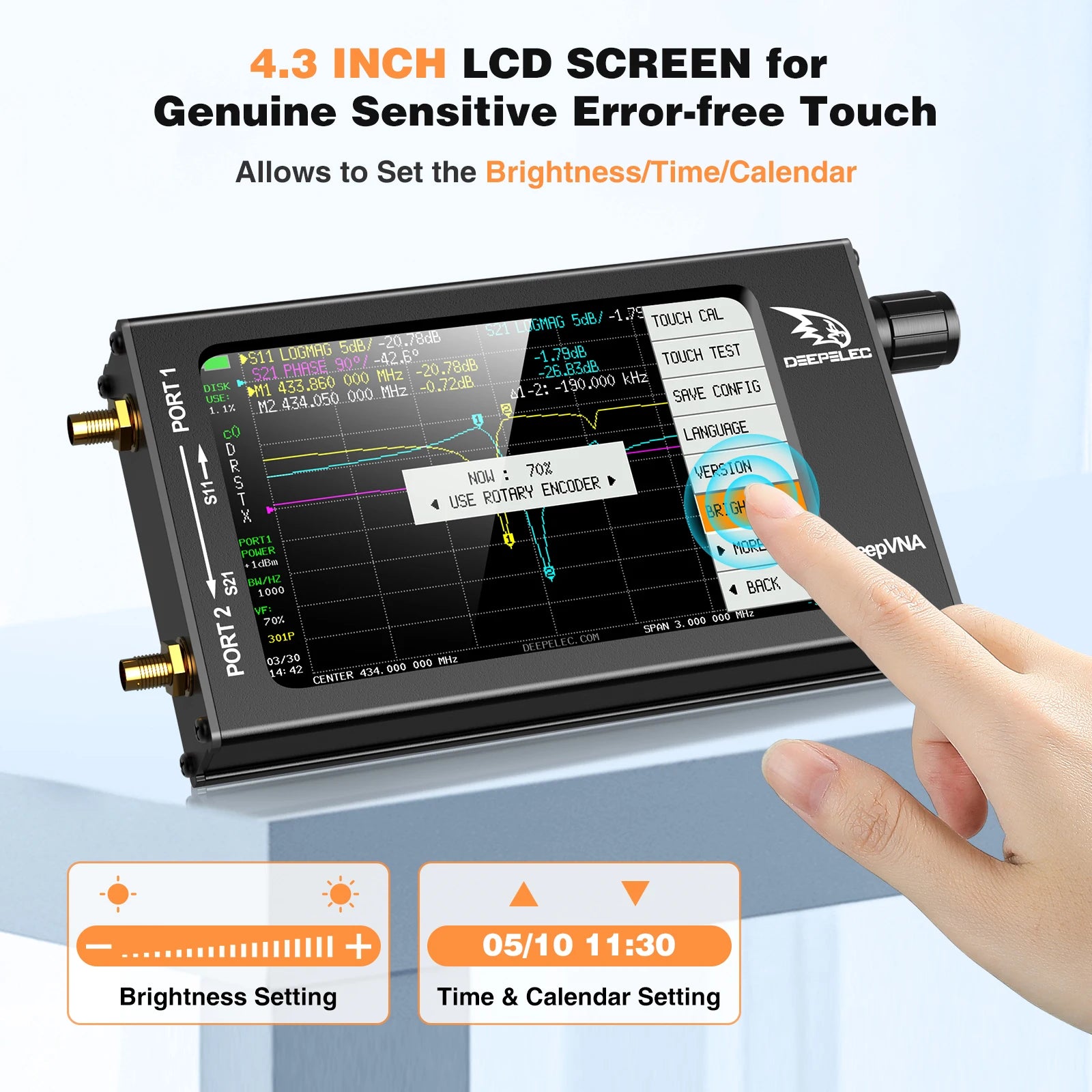 DeepVNA-101 4.3 inch Antenna Analyzer 10k-1.5GHz SWR Meter VHF UHF Network Analyzer HW3.2 IPS LCD + Metal Case NanoVNA-F