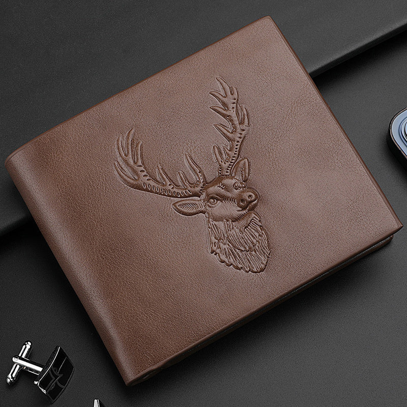 Deer Head Pattern 3D Embossed Pattern Classic Men's Business Wallet