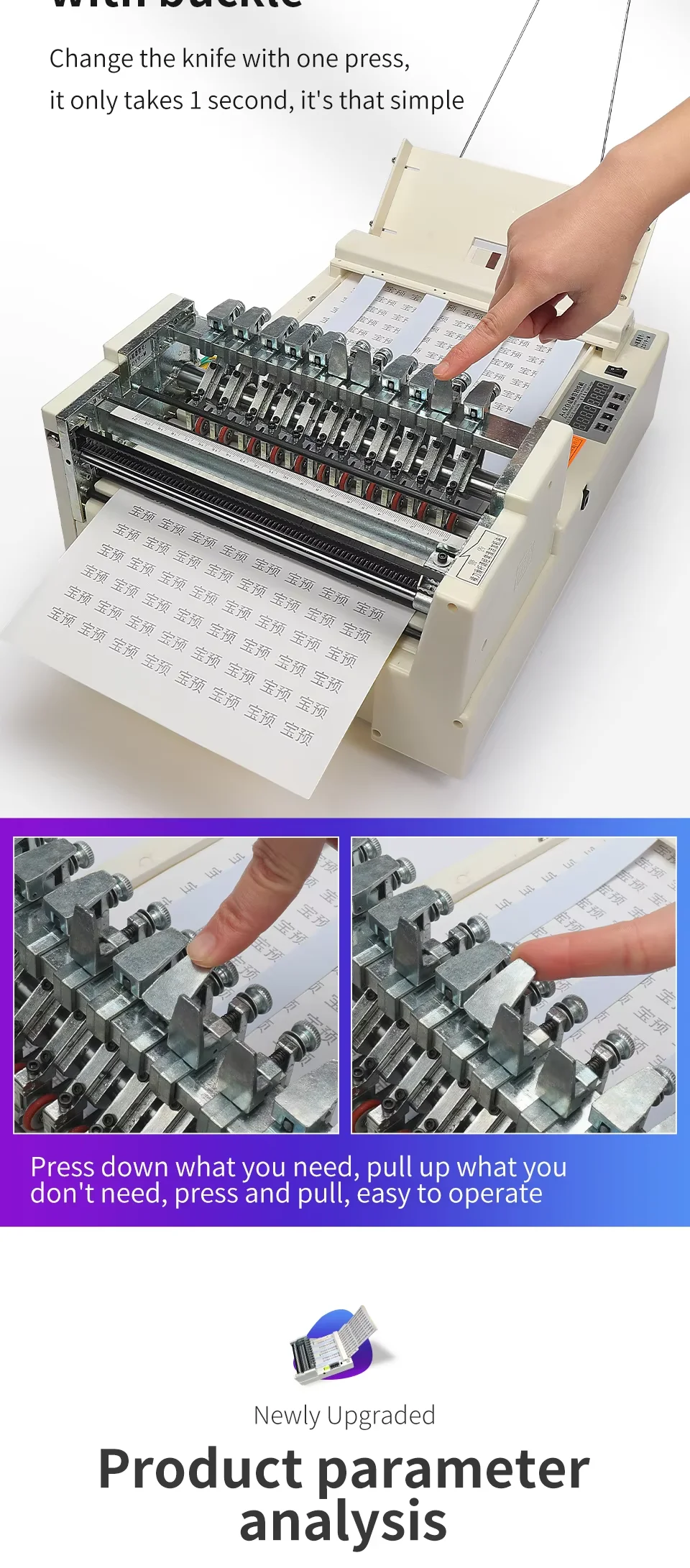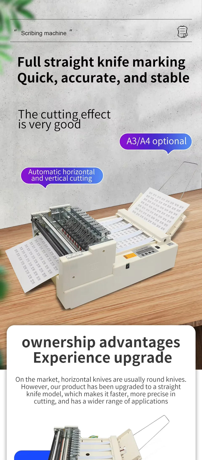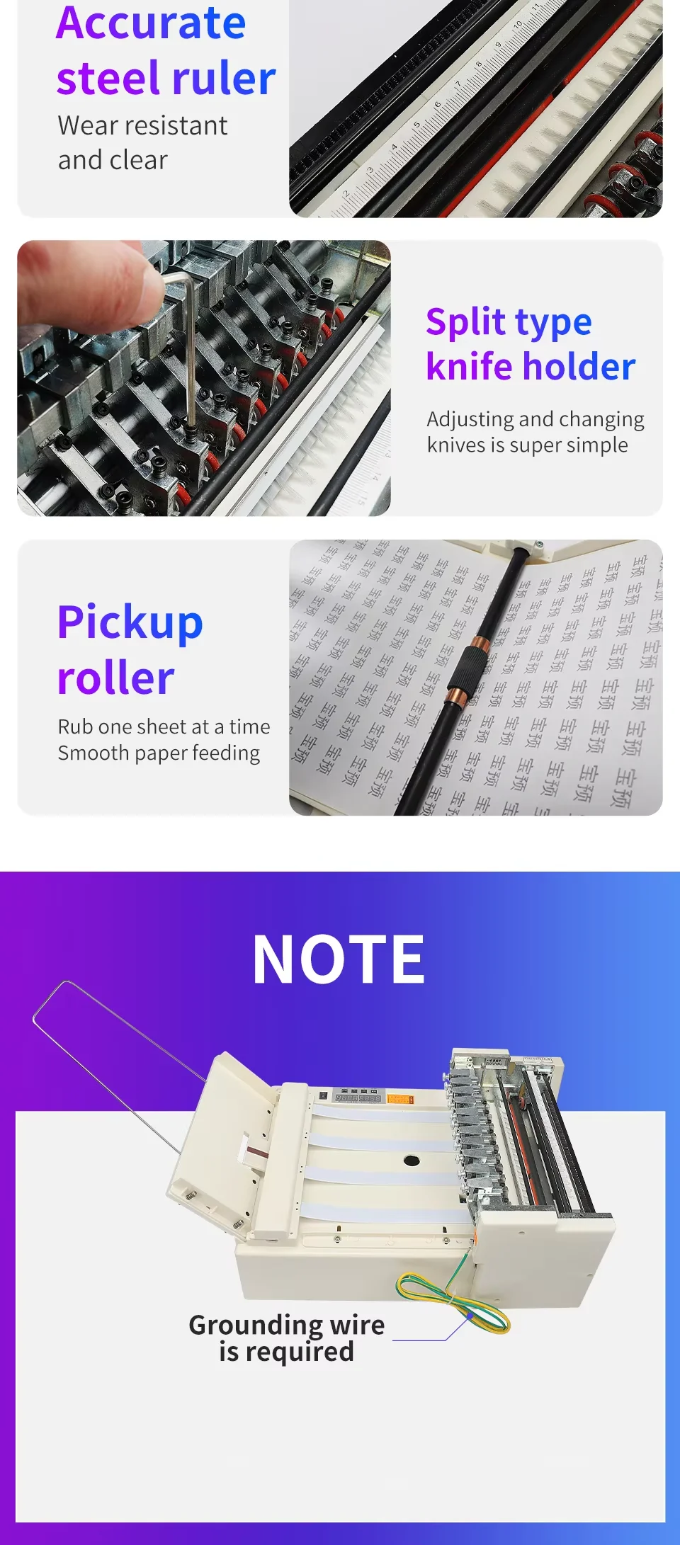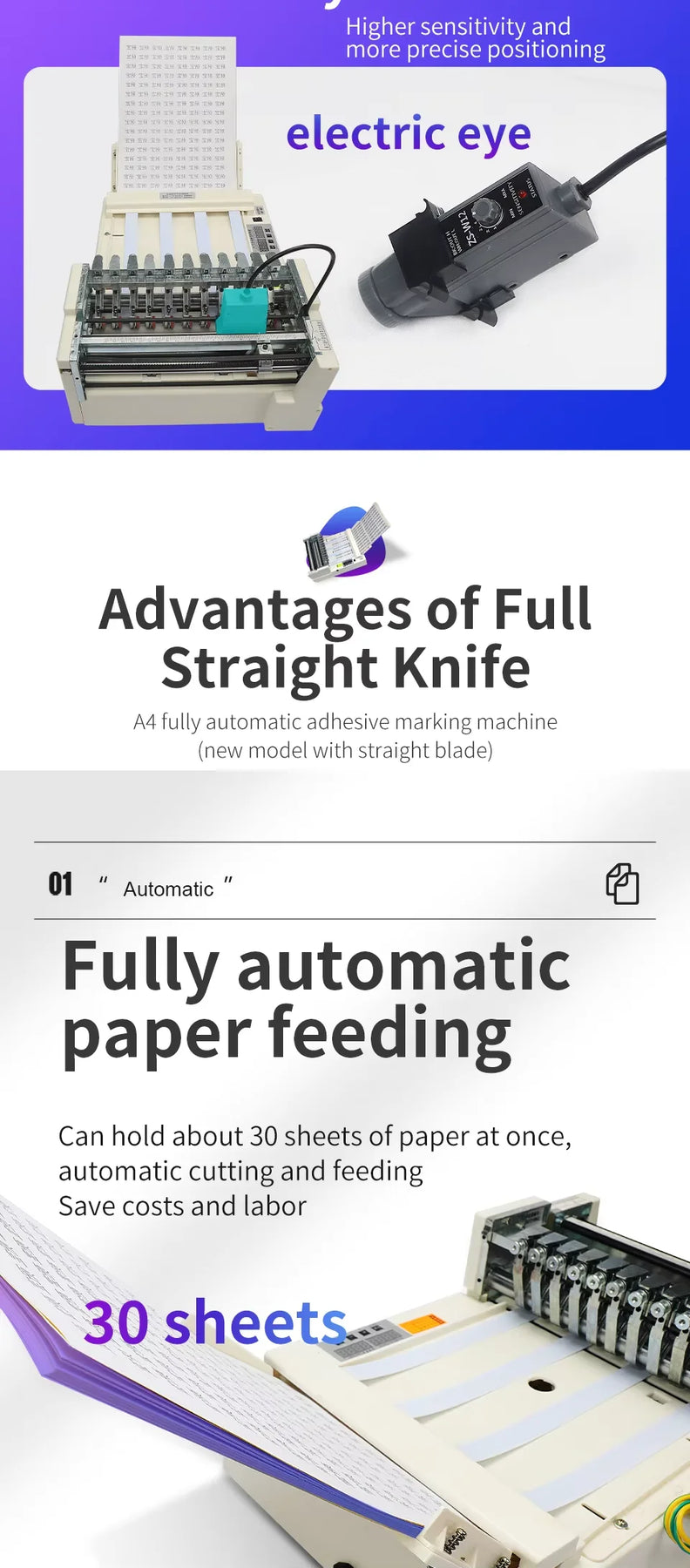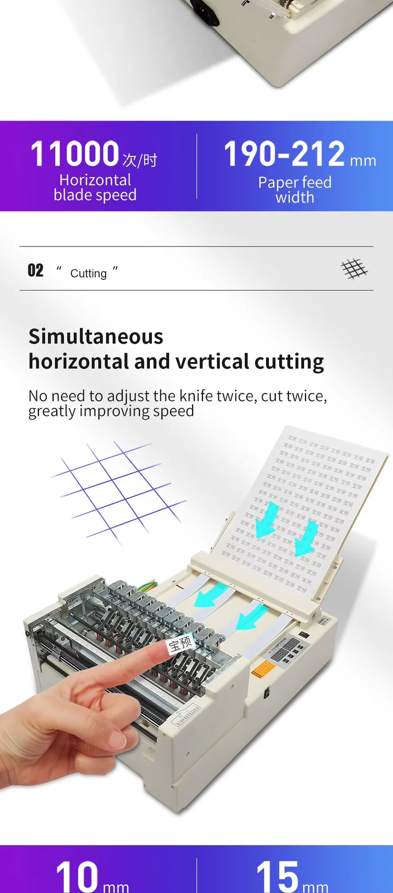 Automatic paper feeding: Fully automatic feeding design, about 30 sheets of A4 specification paper can be placed at a time, automatic feeding and cutting, saving labor costs.