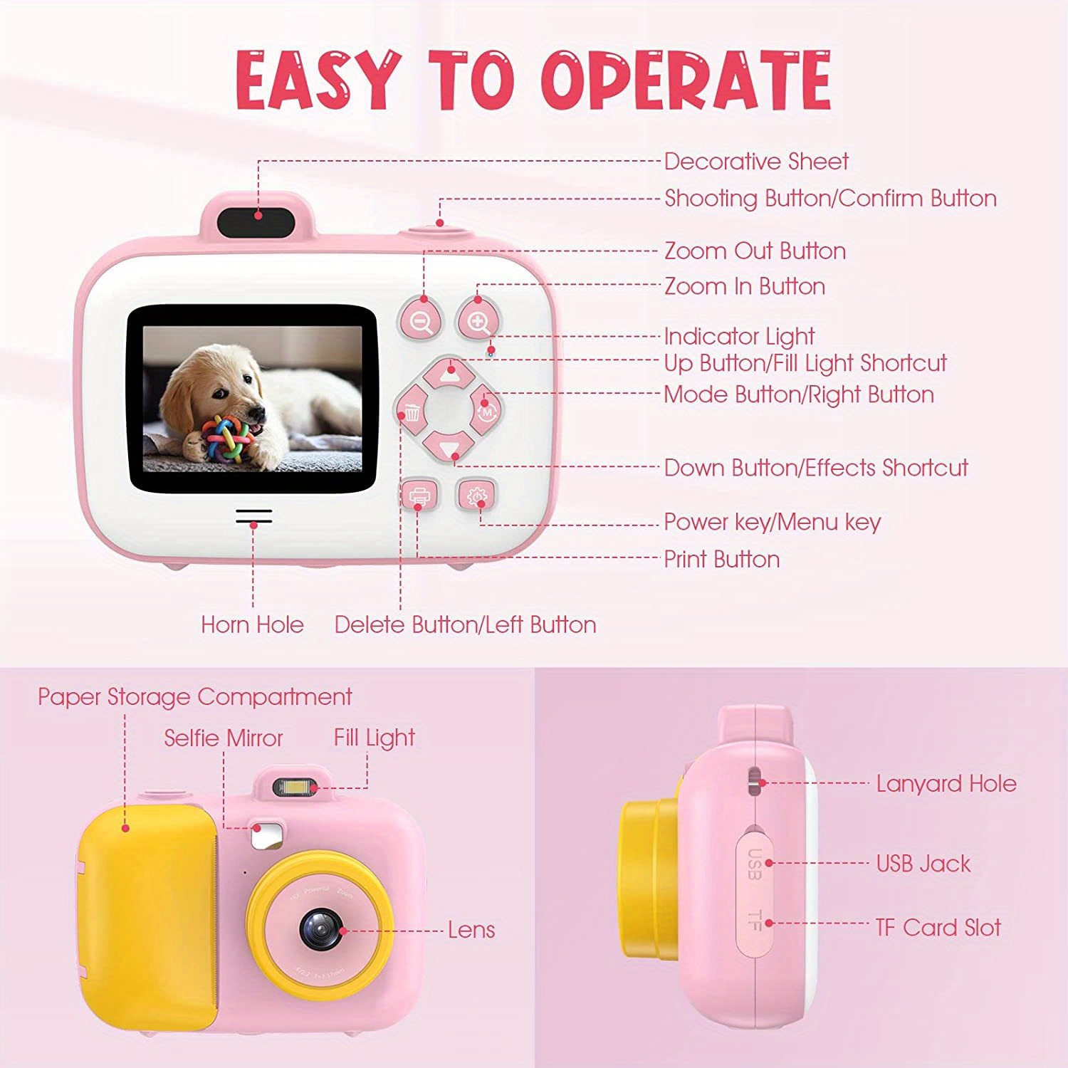 Featurea:42 Million Pixels,Auto Focus,2.7K Video Resolution ,A Variety Of Photo Sticker Styles Are Available ,Instant Print, One-key Printing Is Simple And Fast,6 Levels Of Print Density Can Be Adjusted To Make The Print Quality Clearer
