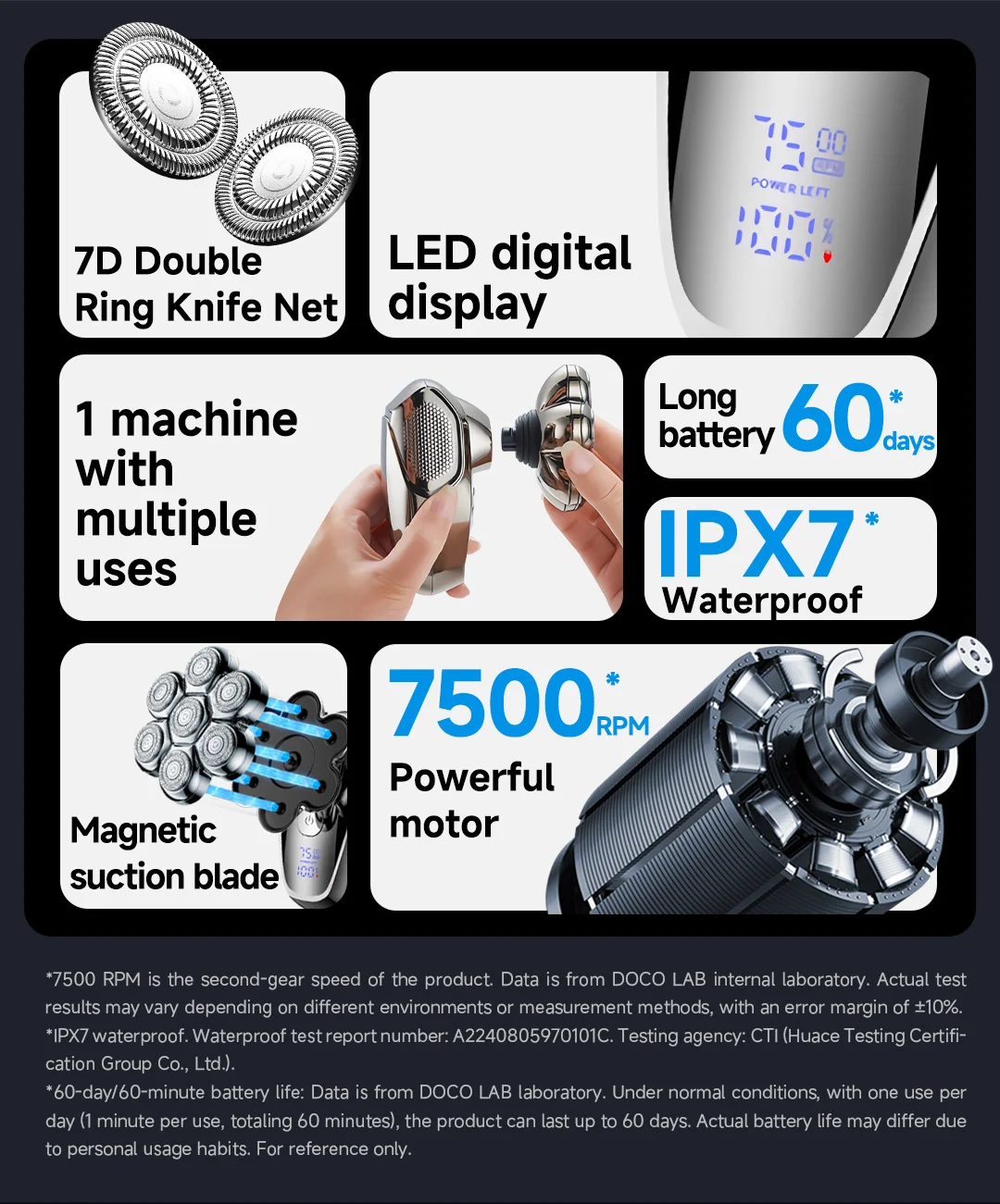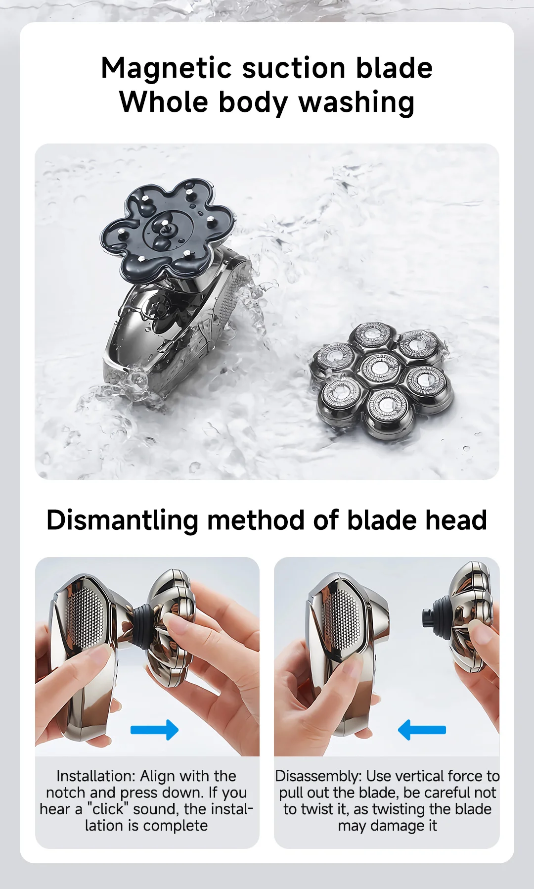 IPX7 waterproof: The whole machine can be rinsed, supports both dry and wet shaving, and ensures worry free cleaning.