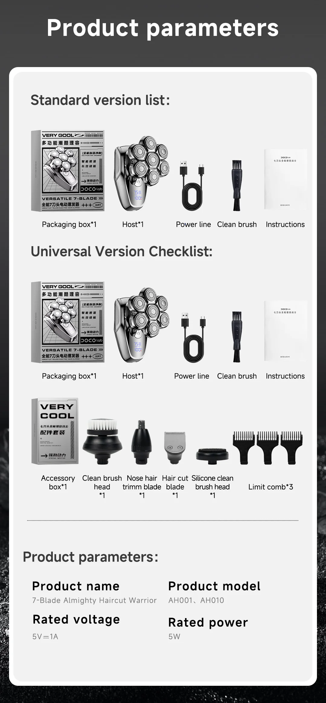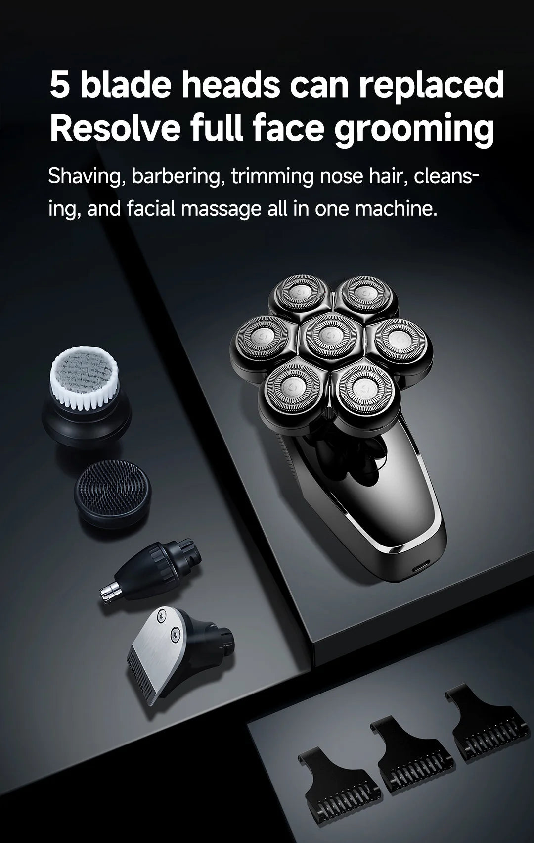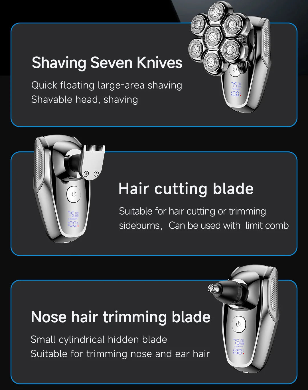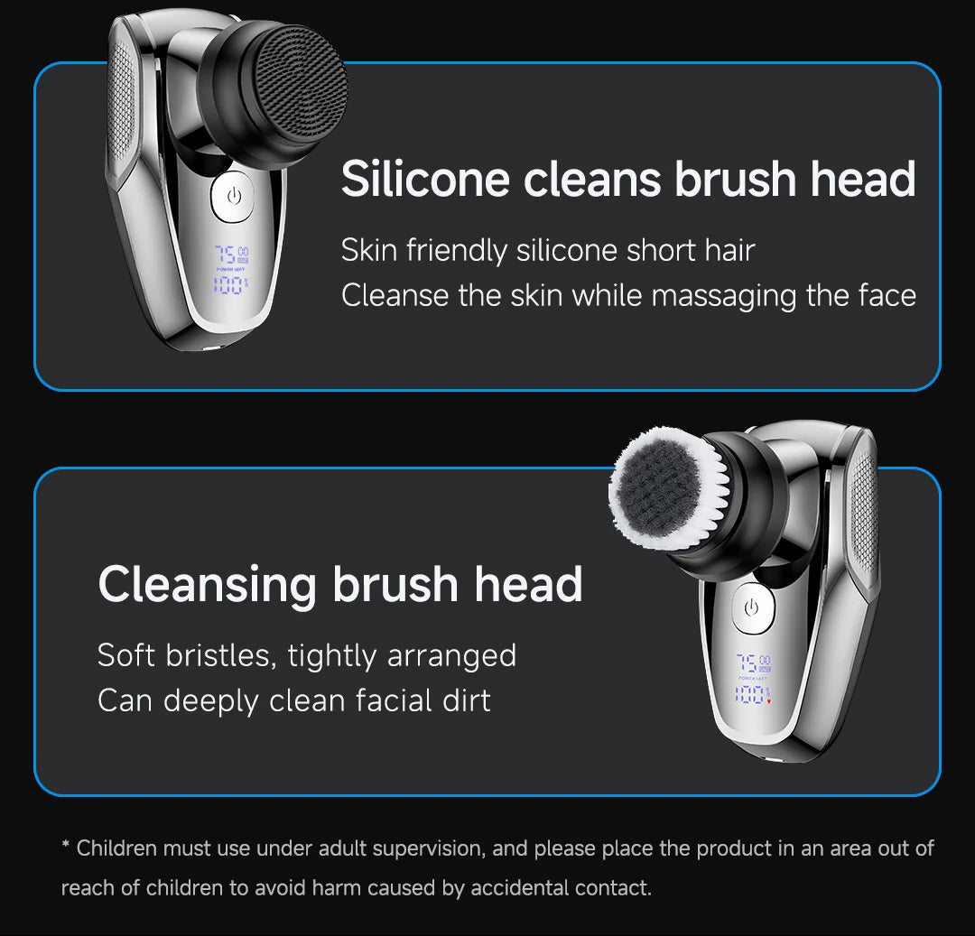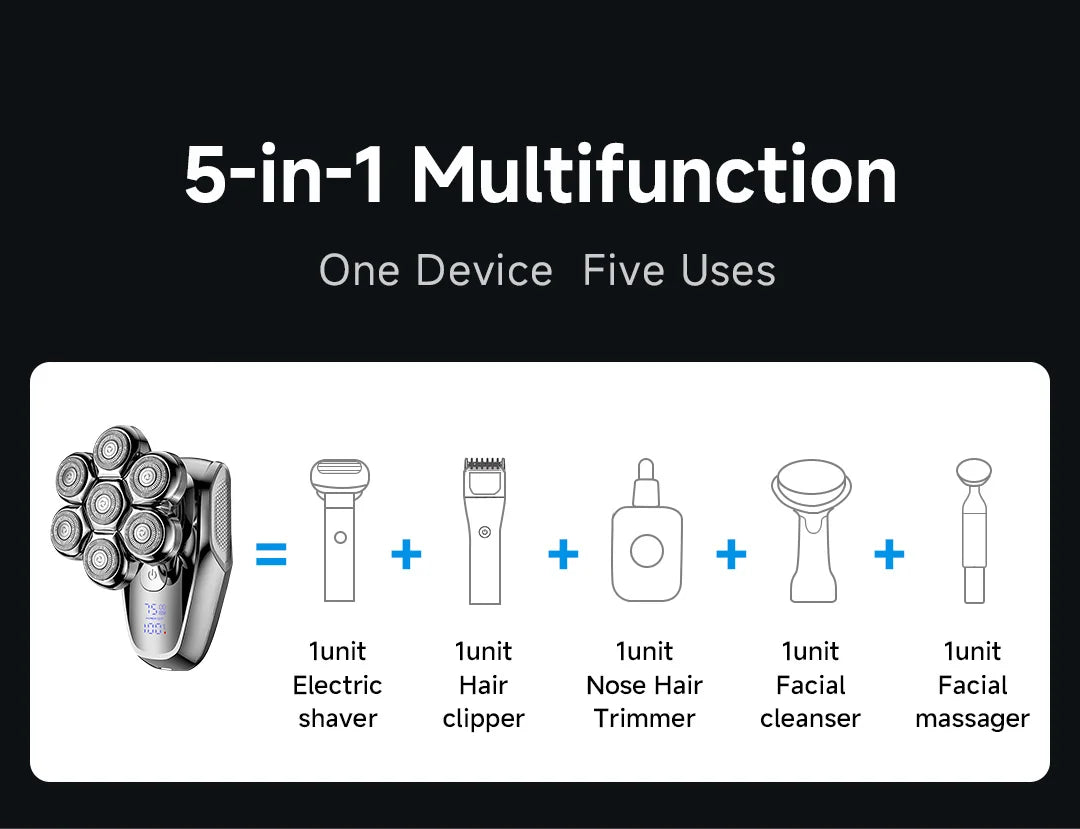5-in-1: Shaving, barbering, nose hair trimming, cleansing, massage, meeting various grooming needs.