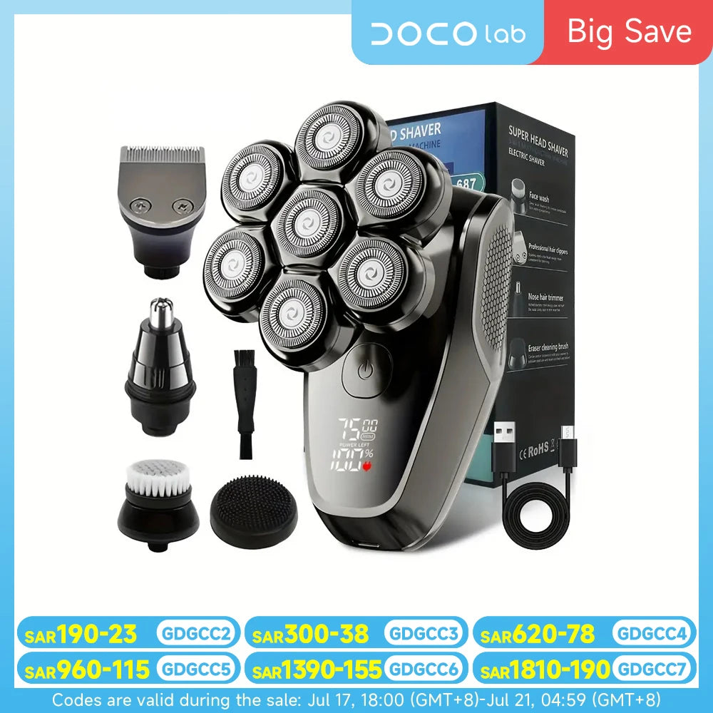 DOCOLAB Electric Head Shaver Razor Rechargeable Cordless Hair cutting machine clipper Trimmer For Bald Man 5 In 1 Home Choice