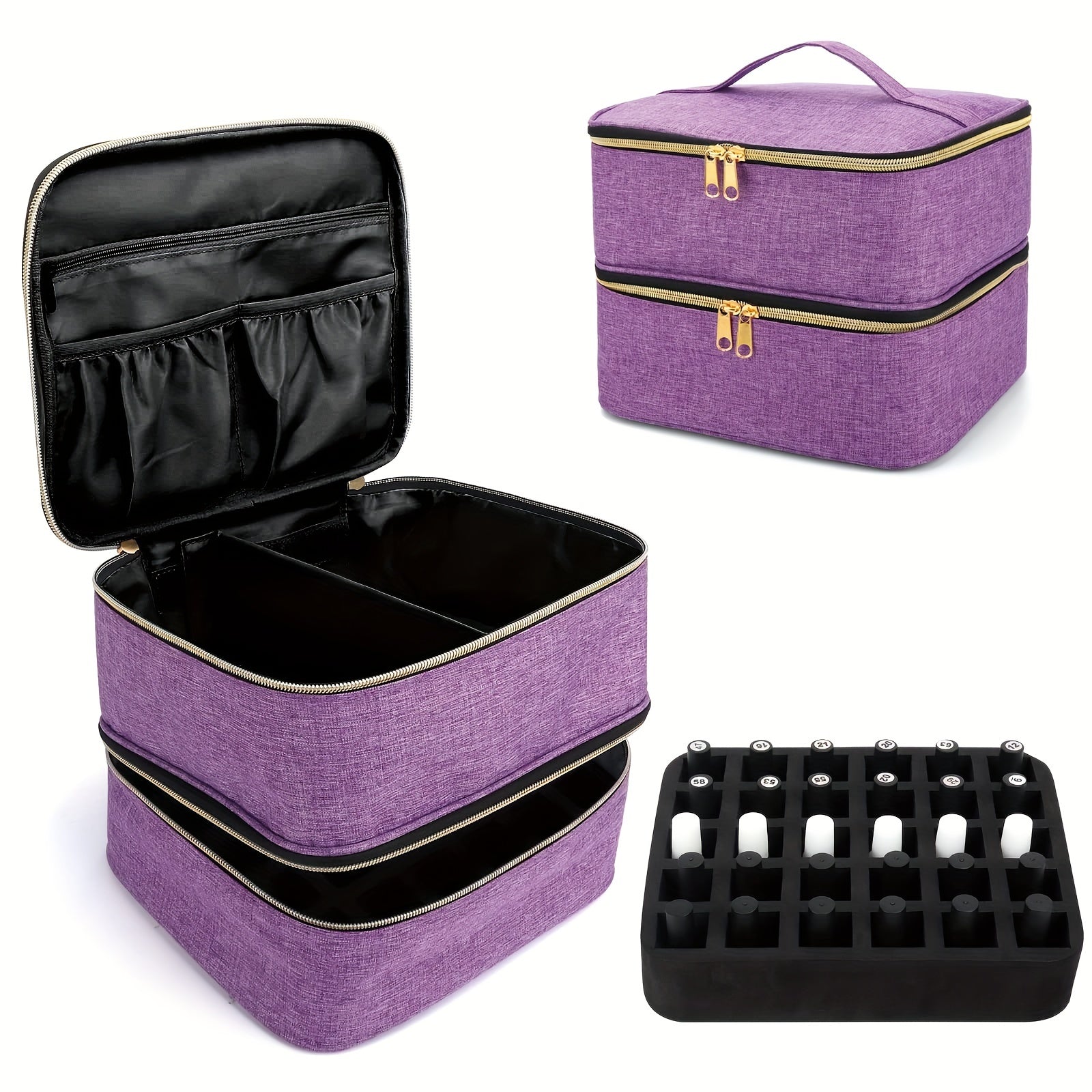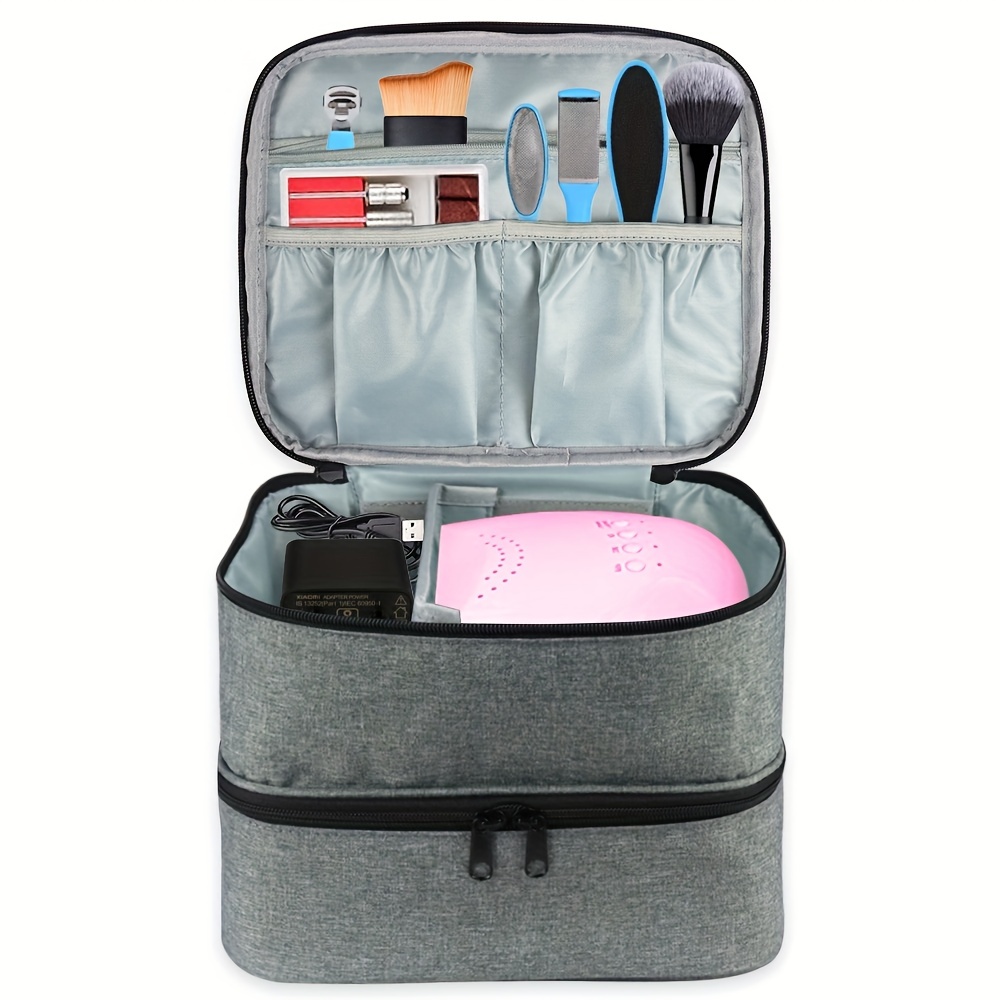 【Keep Everything Organized】 - Double layer design, our nail polish kit box has enough multi-purpose pockets and extra space, perfect for storing UV LED nail lamps, all nail polishes, files, cotton balls, small bottles of nail polish remover agent. It keeps nail polish, nail lights, and manicure tools in one place, so you don't need to do your nails every time you're looking for them (bag only).