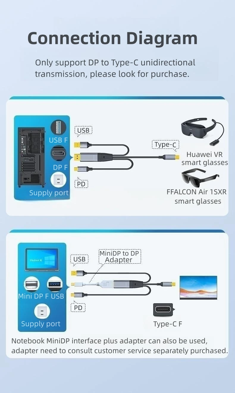 2.Only support DP to Type-C unidirectional transmission, please look for purchase.