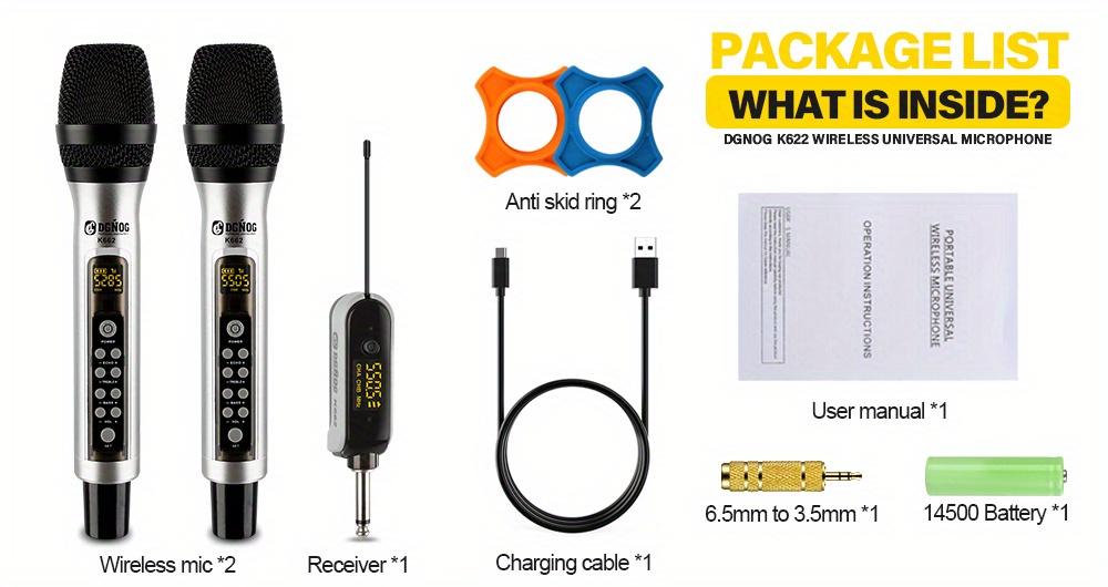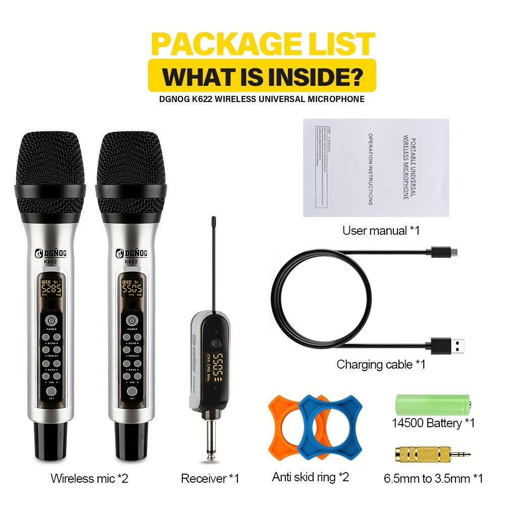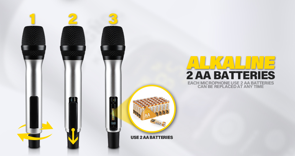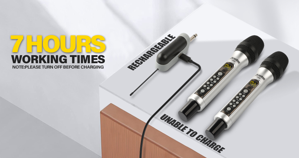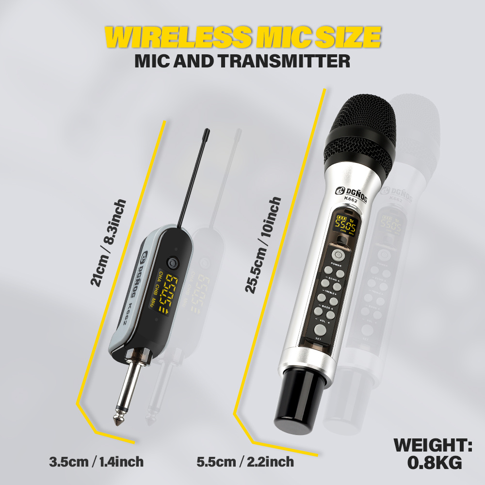 【Portable Dual Dynamic Full Metal Microphone】: plug and play, no extra setting.portable and convenient, eliminating the trouble of carrying the receiving system, comes with dual handheld wireless karaoke microphone, The mic is all metal, harde, more wear resistant, widely applied to conference, speech, web podcast, yoga instructor, church, get together, family party etc.