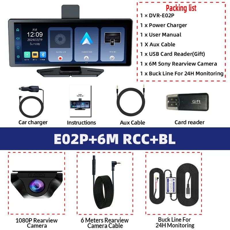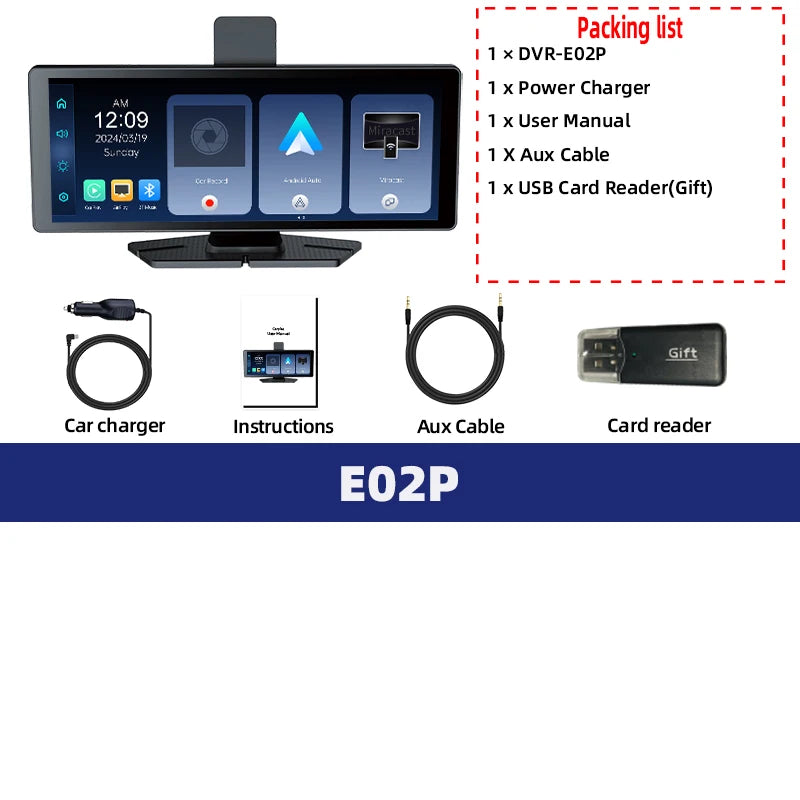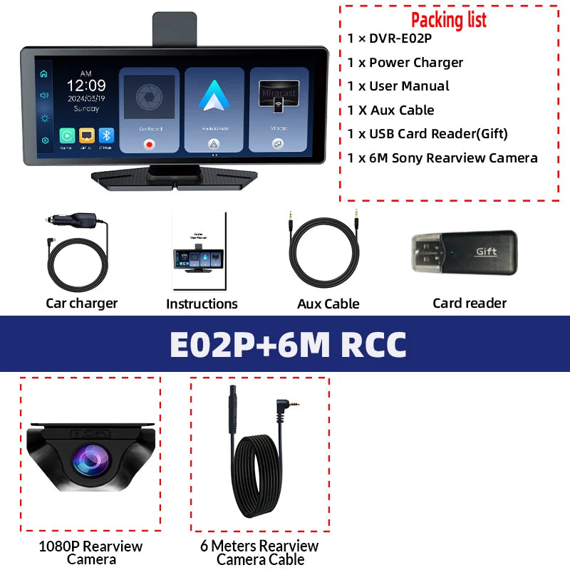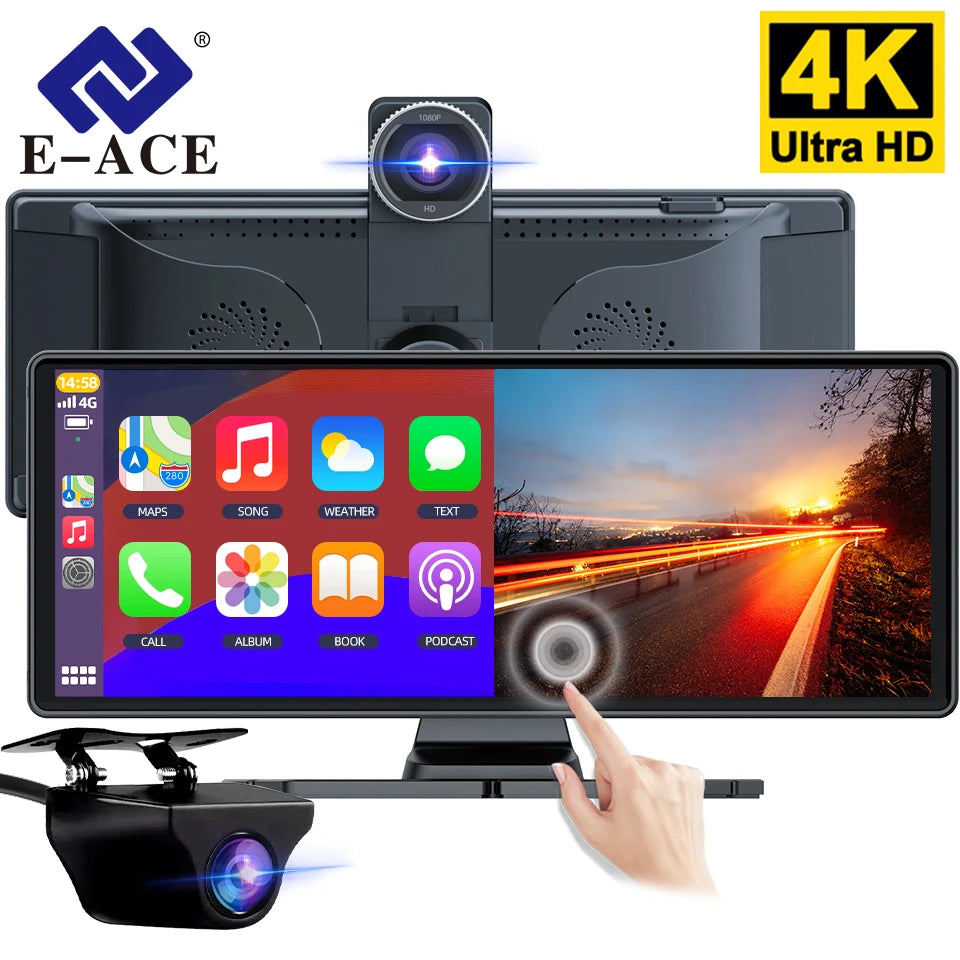 E-ACE Car DVR 4K Android Carplay 10.26 Inch Dashcam 1080P SONY Rear Camera Dual lens GPS WIFI Video Recorder Bluetooth