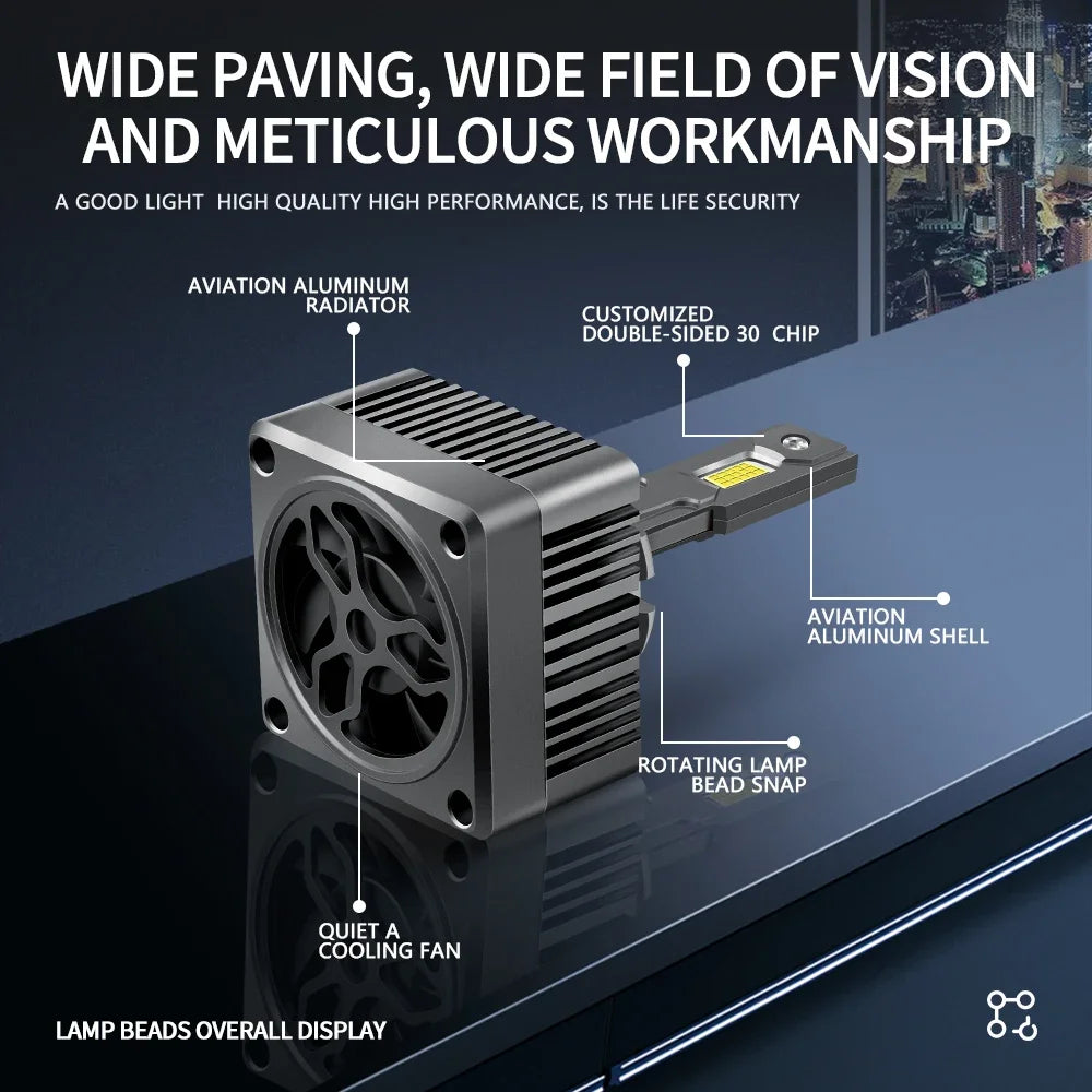 5. The driving scheme adopts constant current intelligent temperature control module (intelligent control current, so that the LED effect can be maximized). Protect headlights and improve driving safety)