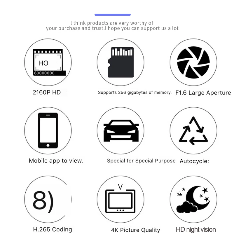 8. Ultra-high configuration (high-end 1600p full hd Hidden Wifi Dash Camera professional-grade photosensitive camera, excellent recording effect)