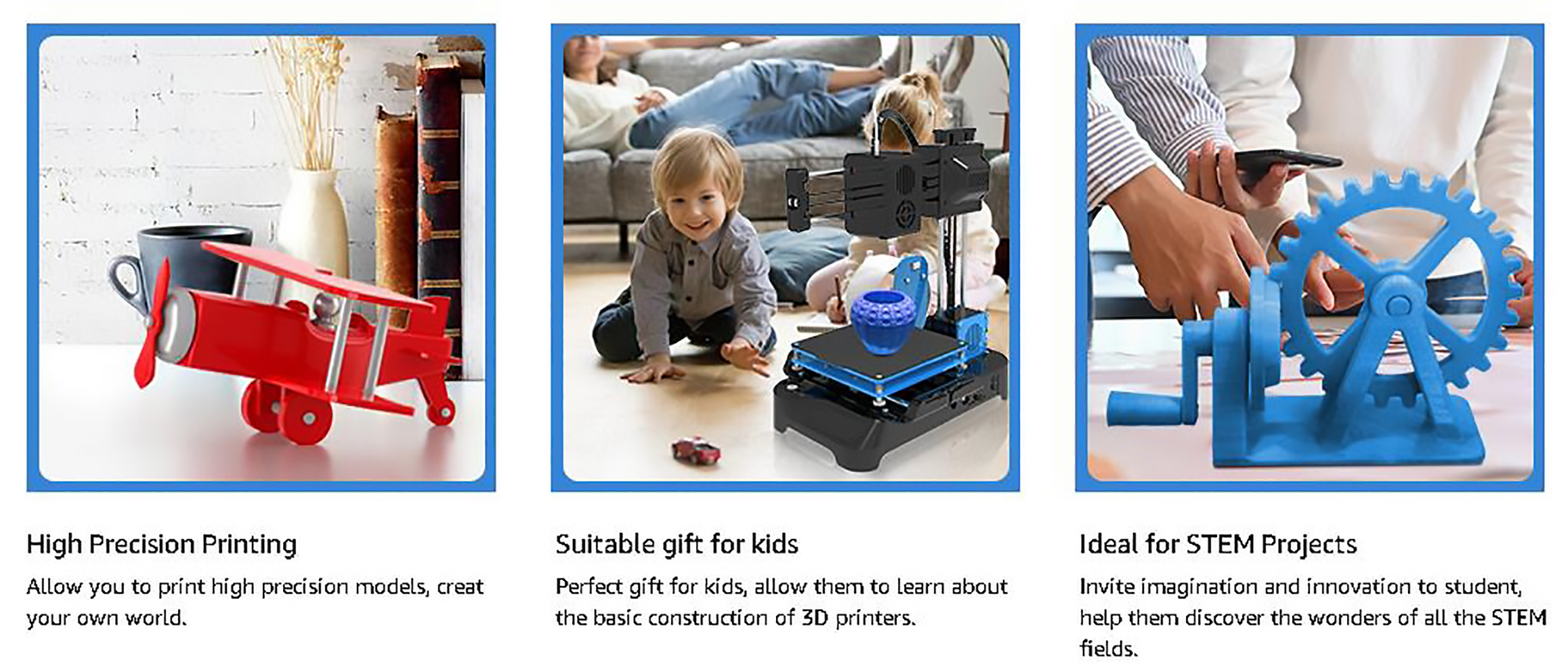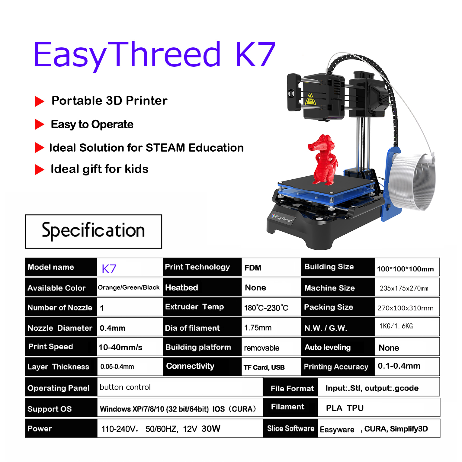 Easythreed K7 toy Mini 3D Printer for Household Education & Students 100*100*100mm Printing Size Support One Key Printing with 1.75mm 0.4mm Nozzle/CE Certificate