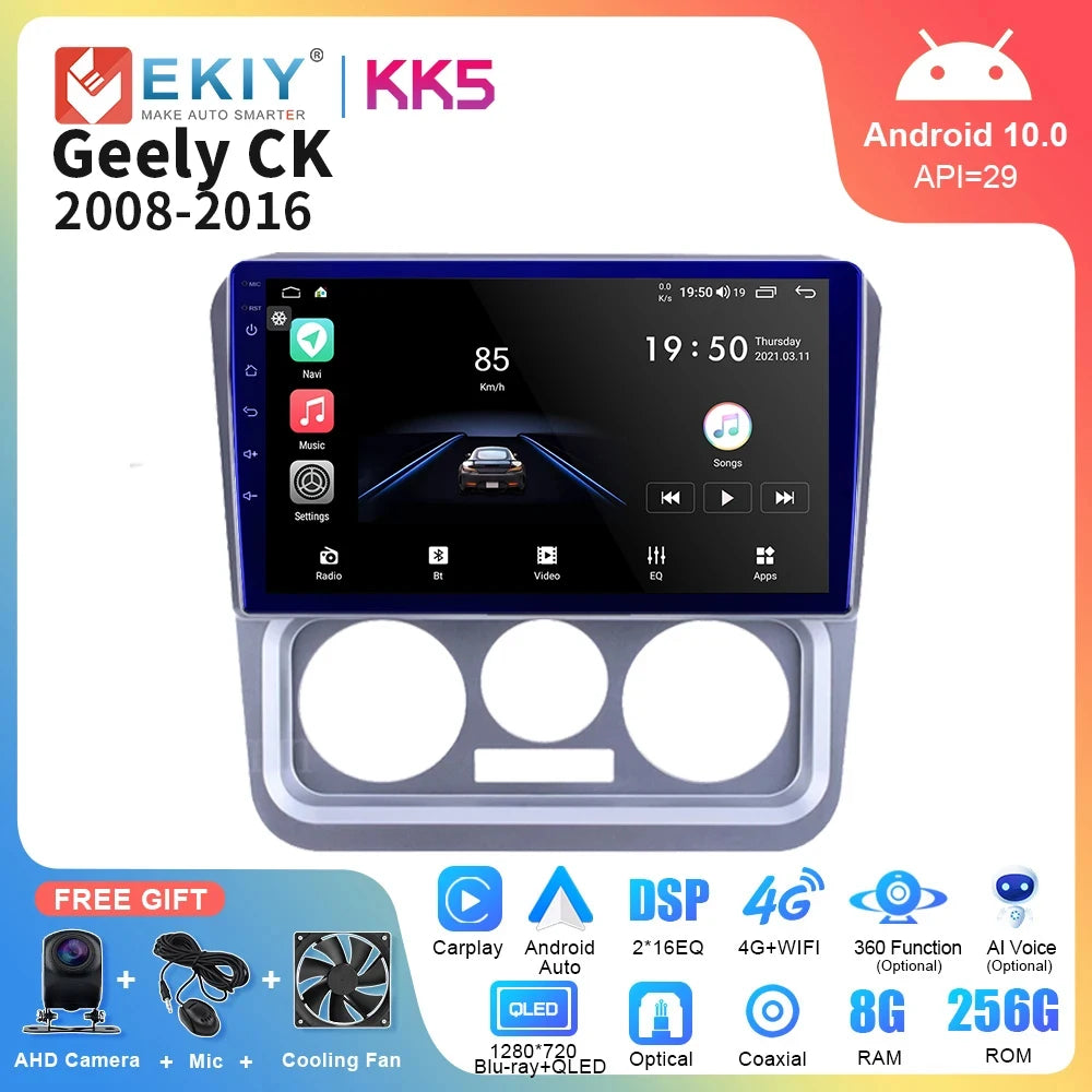 EKIY KK5 Car Radio For Geely CK 2008 - 2016 Car Intelligent System Player GPS Bluetooth USB Carplay Android Auto 2 Din Stereo