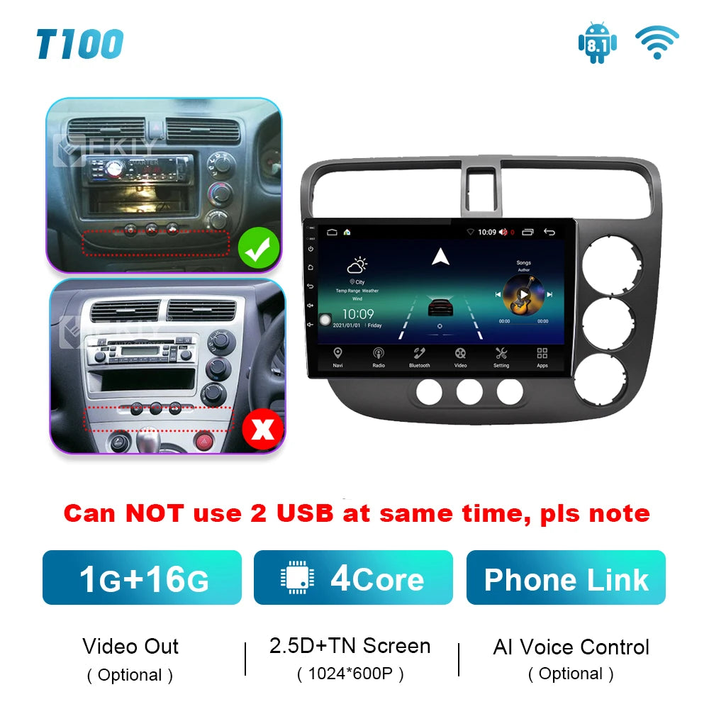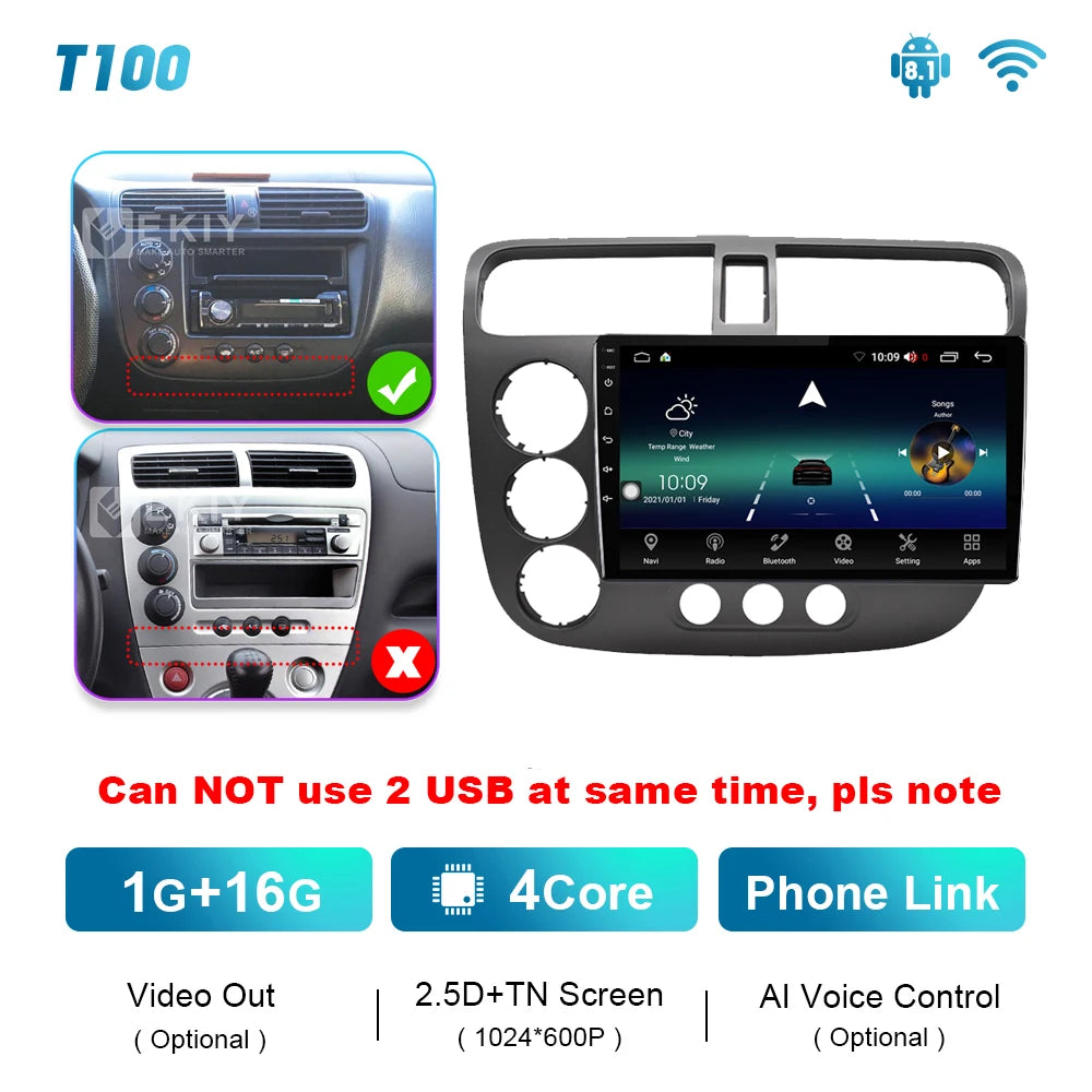 Fit: Multimedia System Tape Recorder For Honda CIVIC 2000-2006