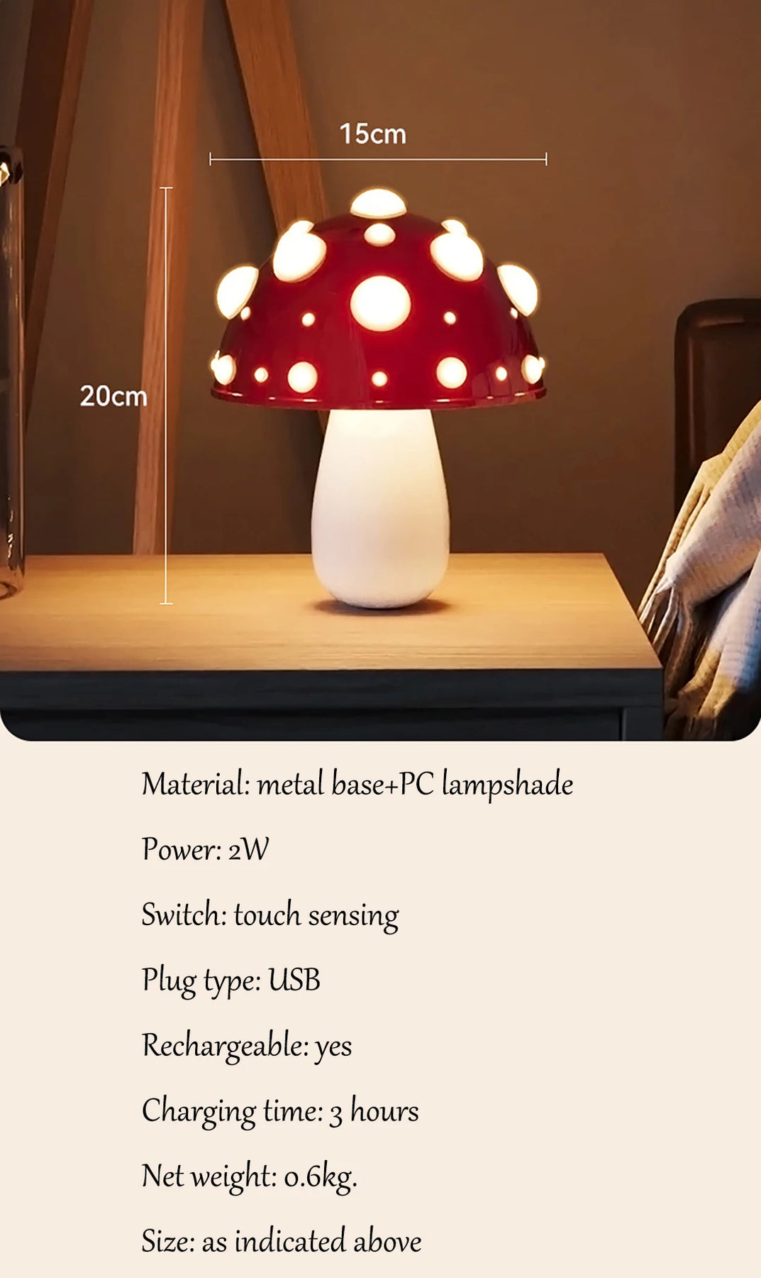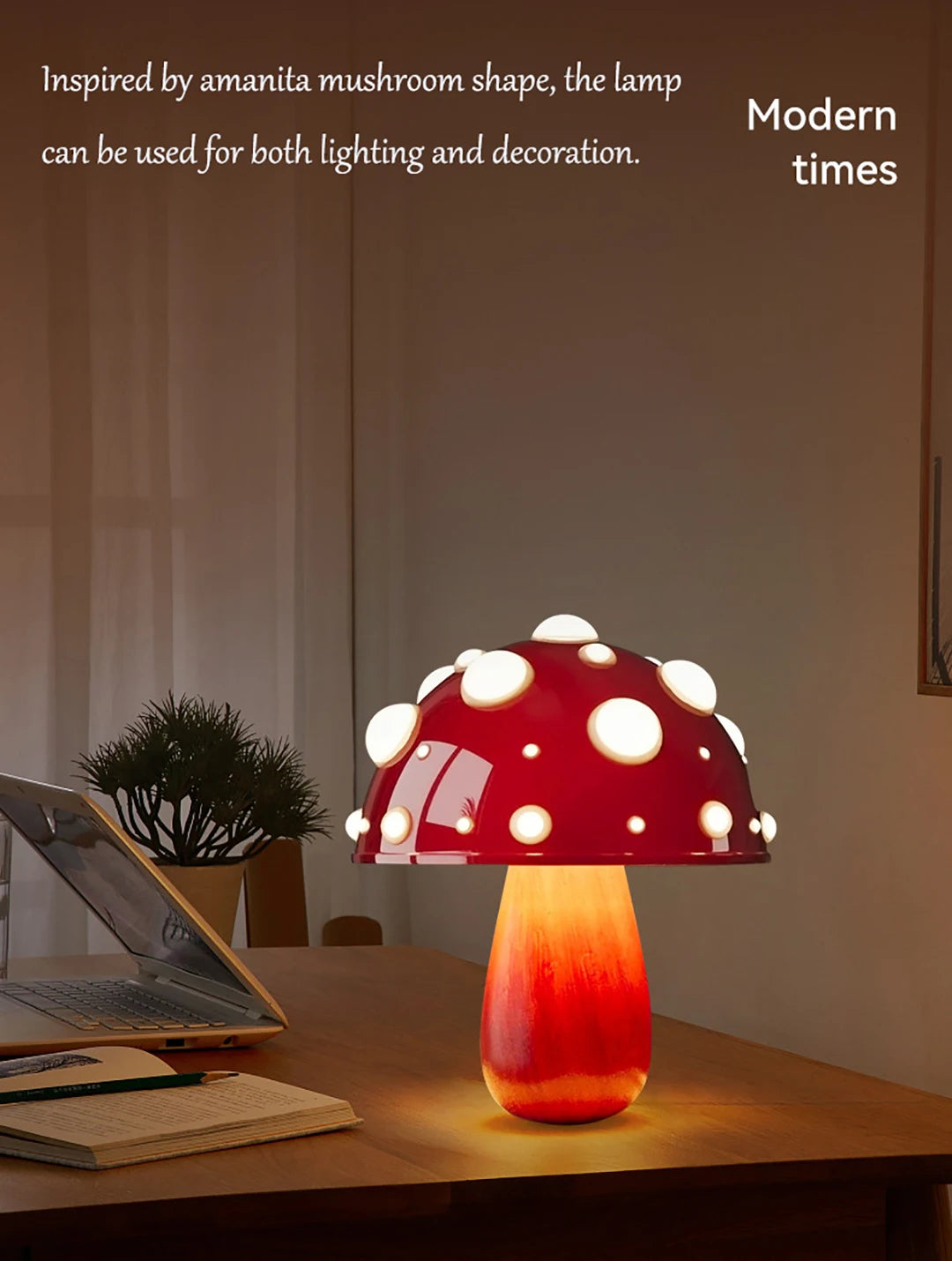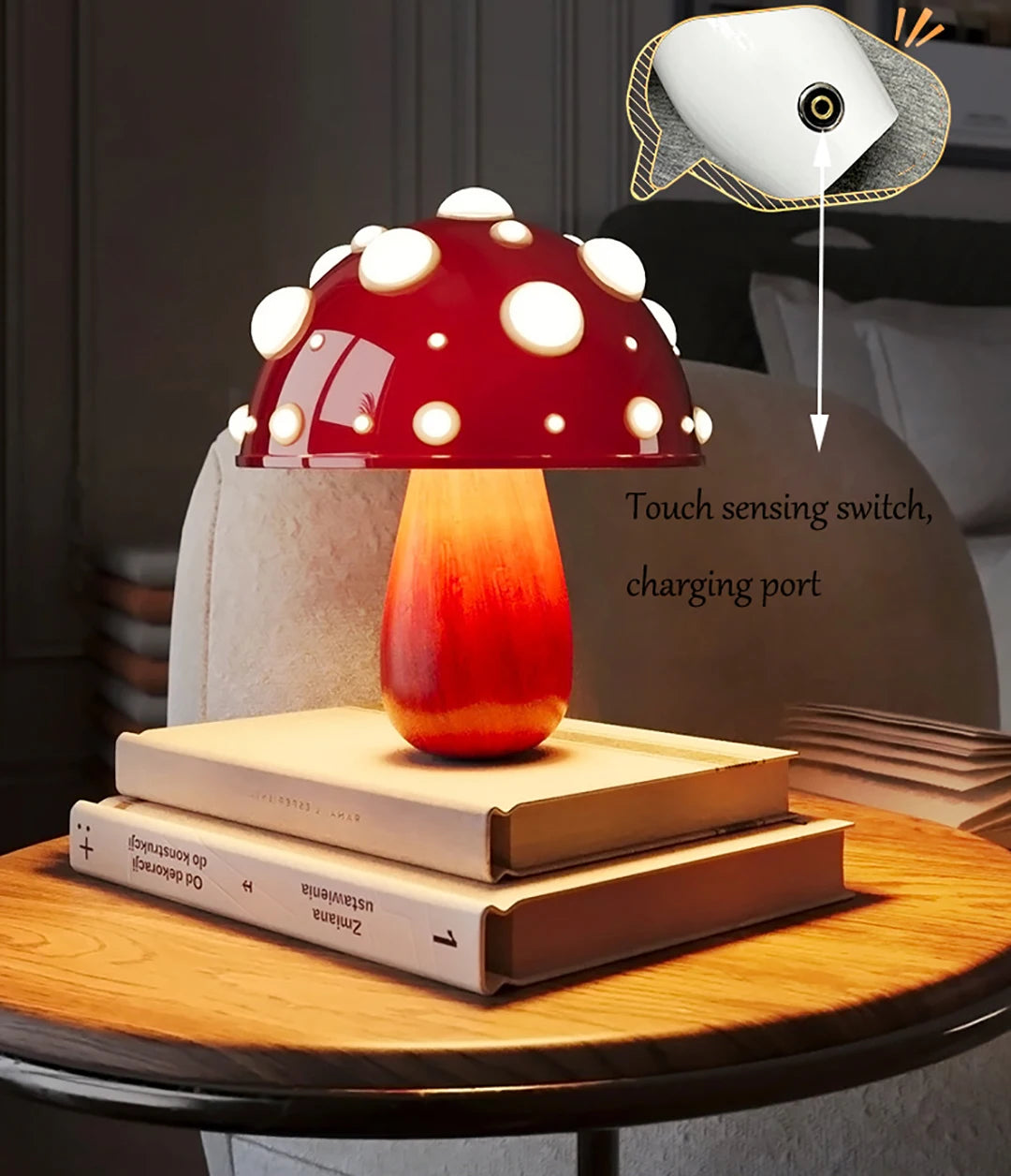 Fly Amanita Mushroom Lamp with Dual Color LED G9 Bulb USB Rechargeable Fly Agaric Desk Light for Livingroom Bedside Study Hotel