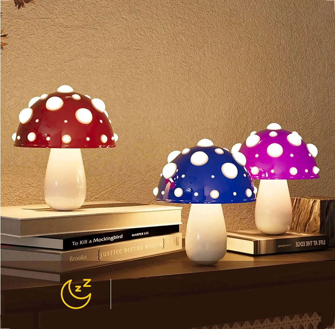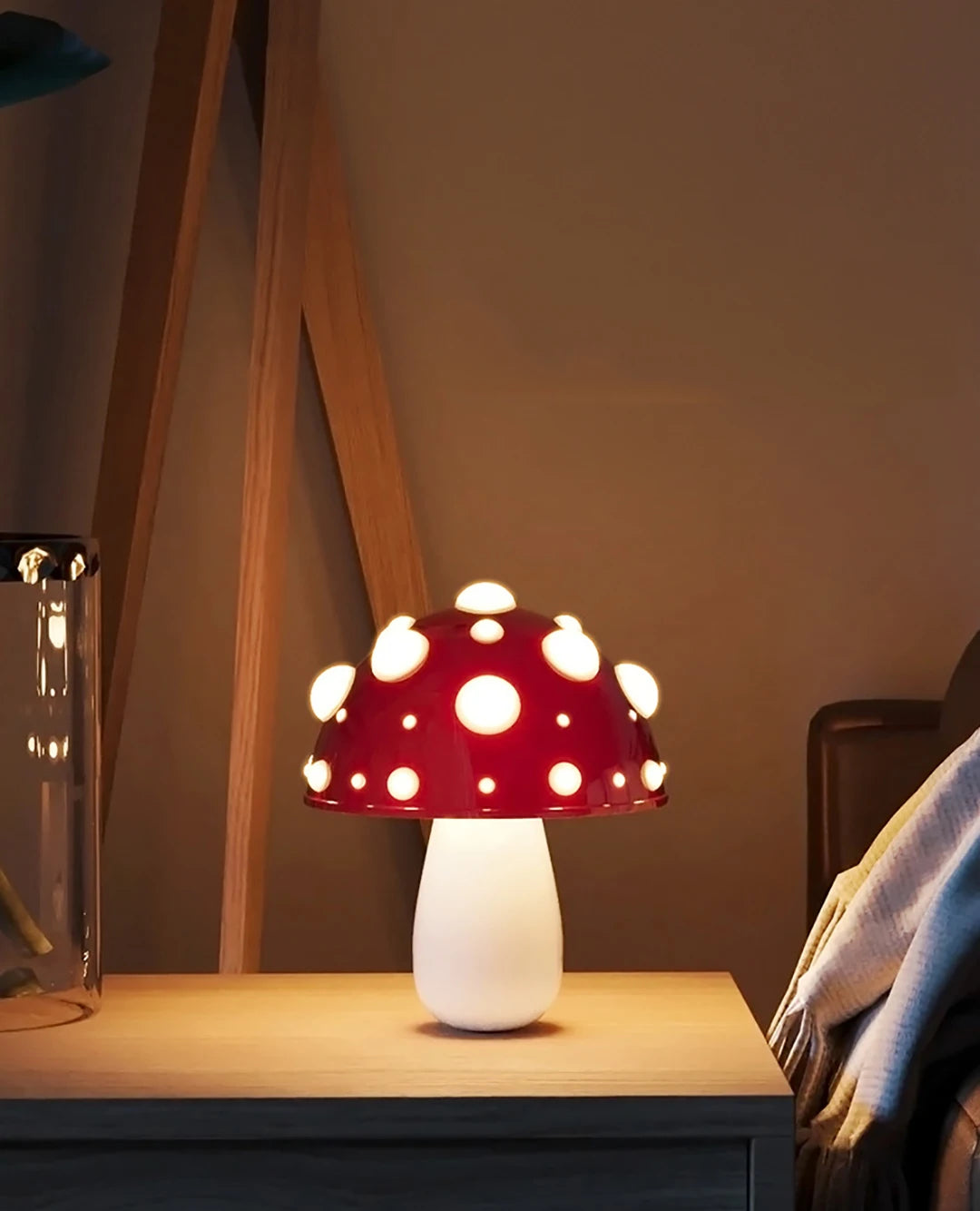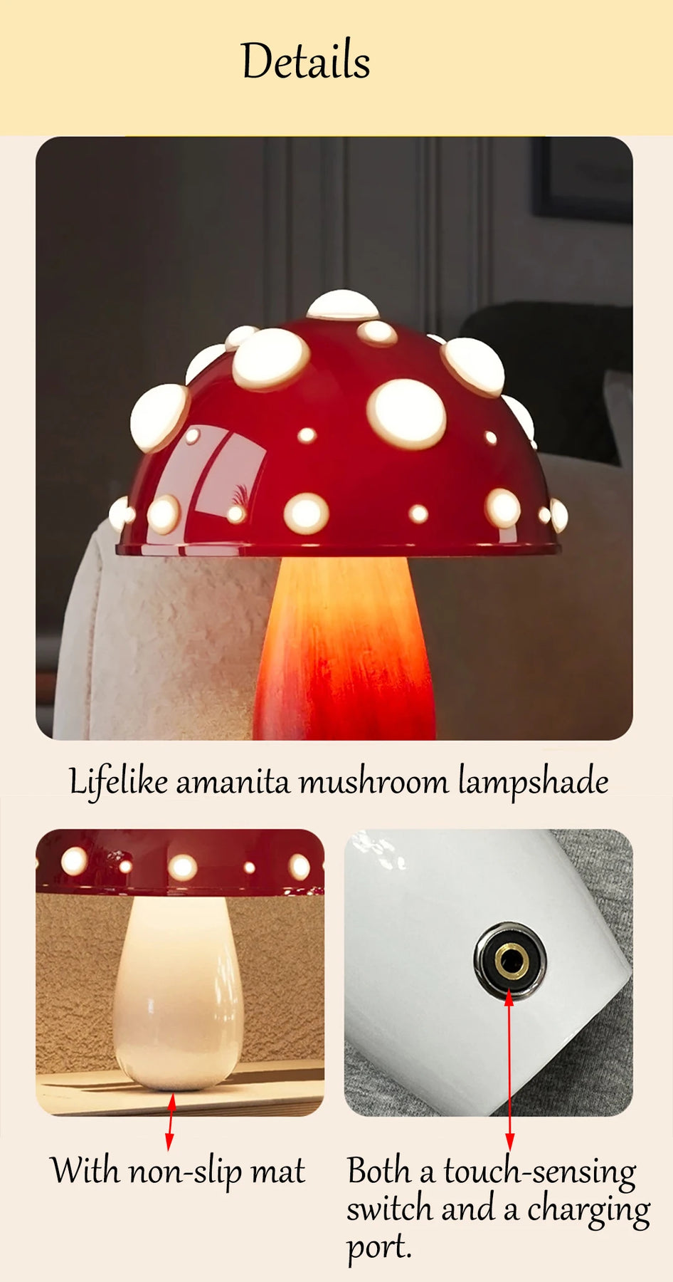 Fly Amanita Mushroom Lamp with Dual Color LED G9 Bulb USB Rechargeable Fly Agaric Desk Light for Livingroom Bedside Study Hotel