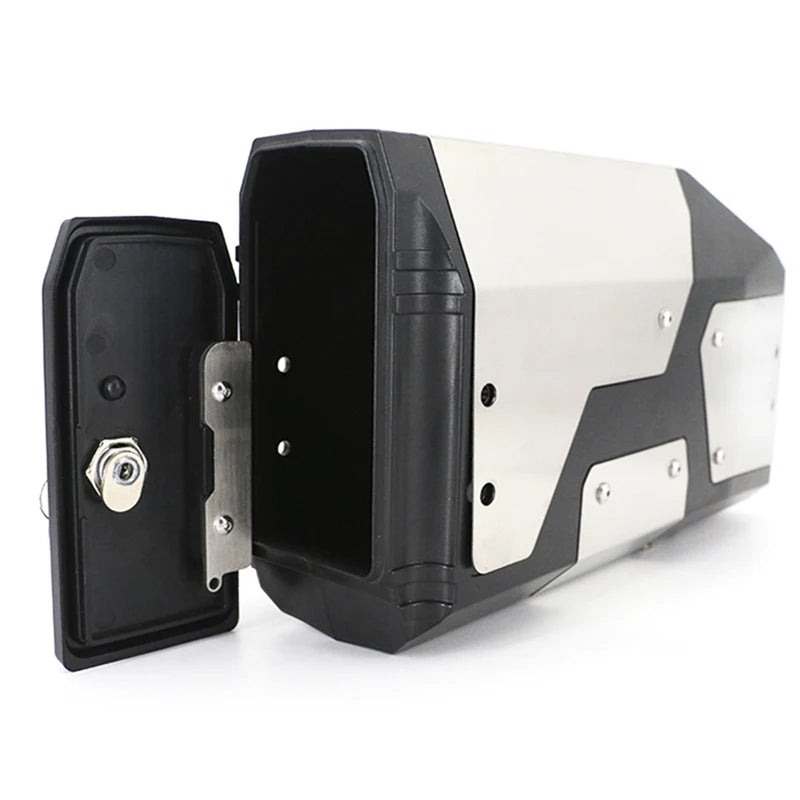 The tool box is the ideal solution for the safe storage of small items on your GS. The optimal utilisation of space on the vehicle allows tools, first-aid kit, breakdown kit and many other useful items to remain on the motorcycle permanently and without interfering. They are always readily accessible, even when the cases are not mounted.
