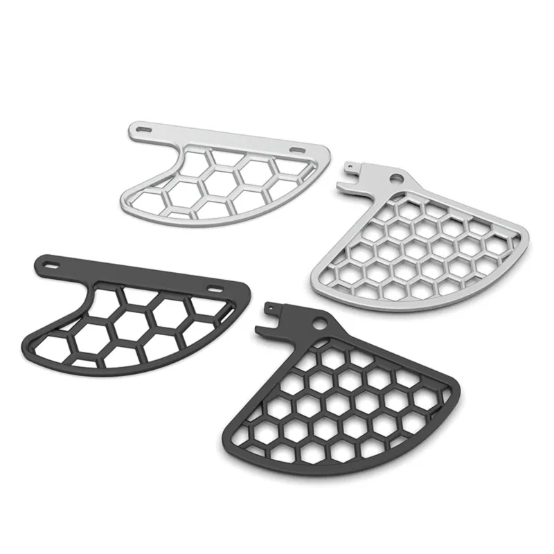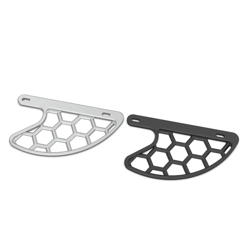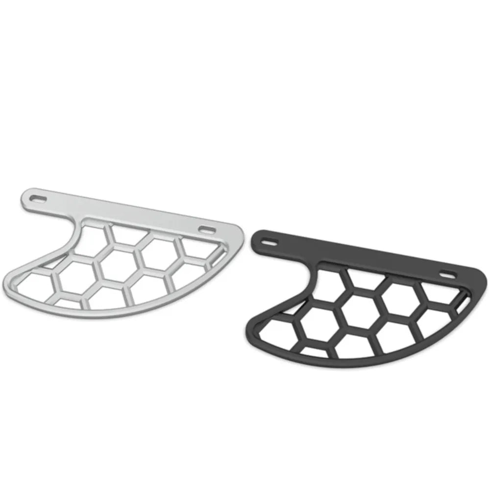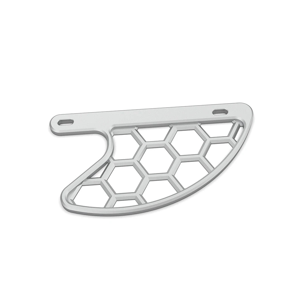 -CNC Brake Caliper Support With Brake Disc Guard. -The integrated brake disc guard protects the rear brake disc from stones and other solid objects in the event of a crash or in the heat of battle. -This Brake Caliper Support Disc Guard Protector is made from high strength Aluminium with beautiful Powder Coated surface finishing.