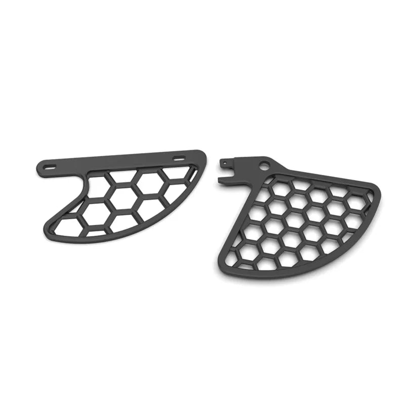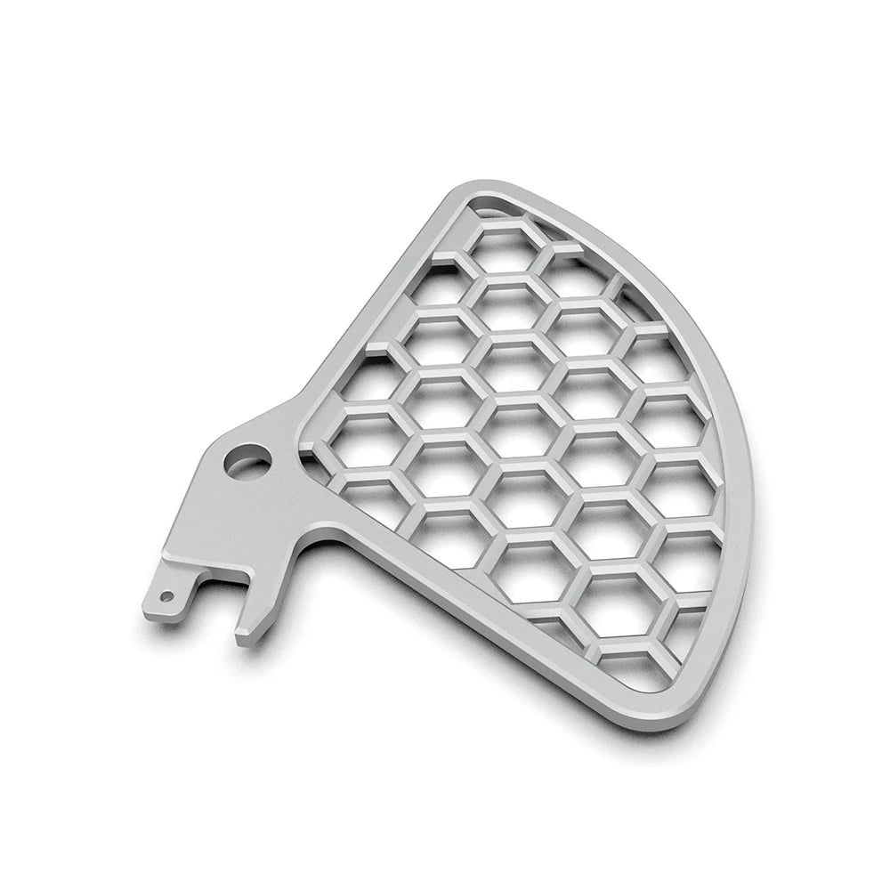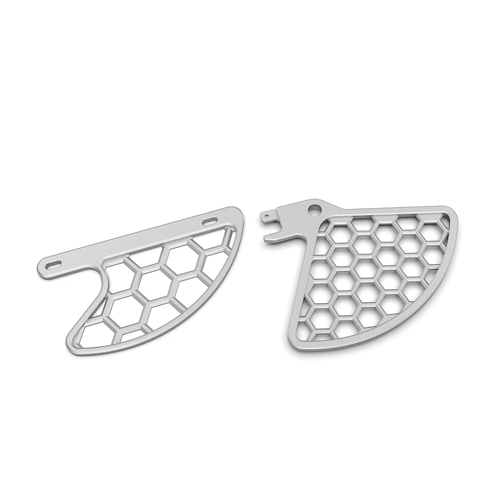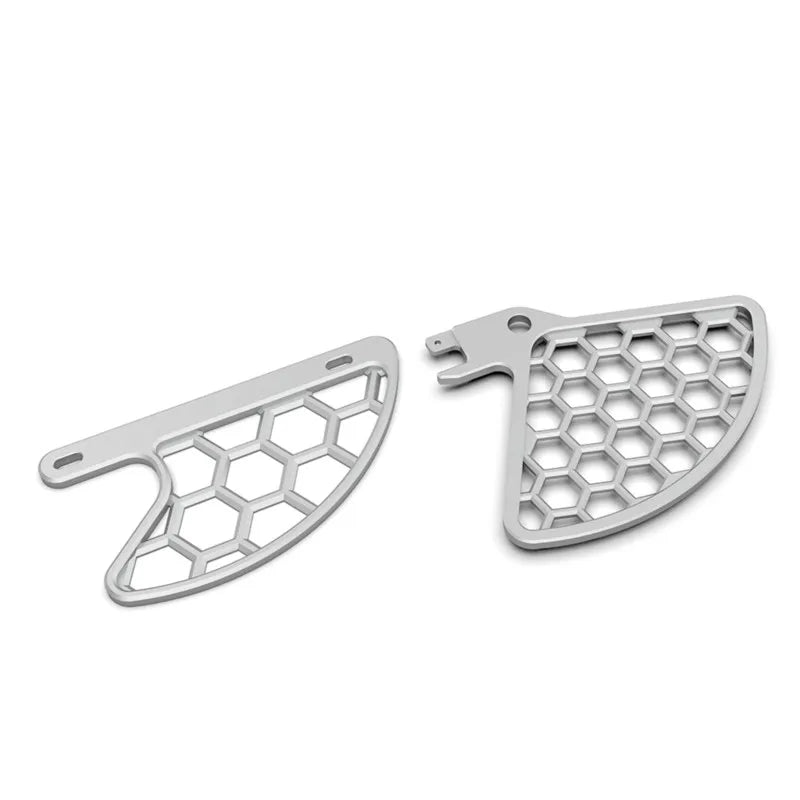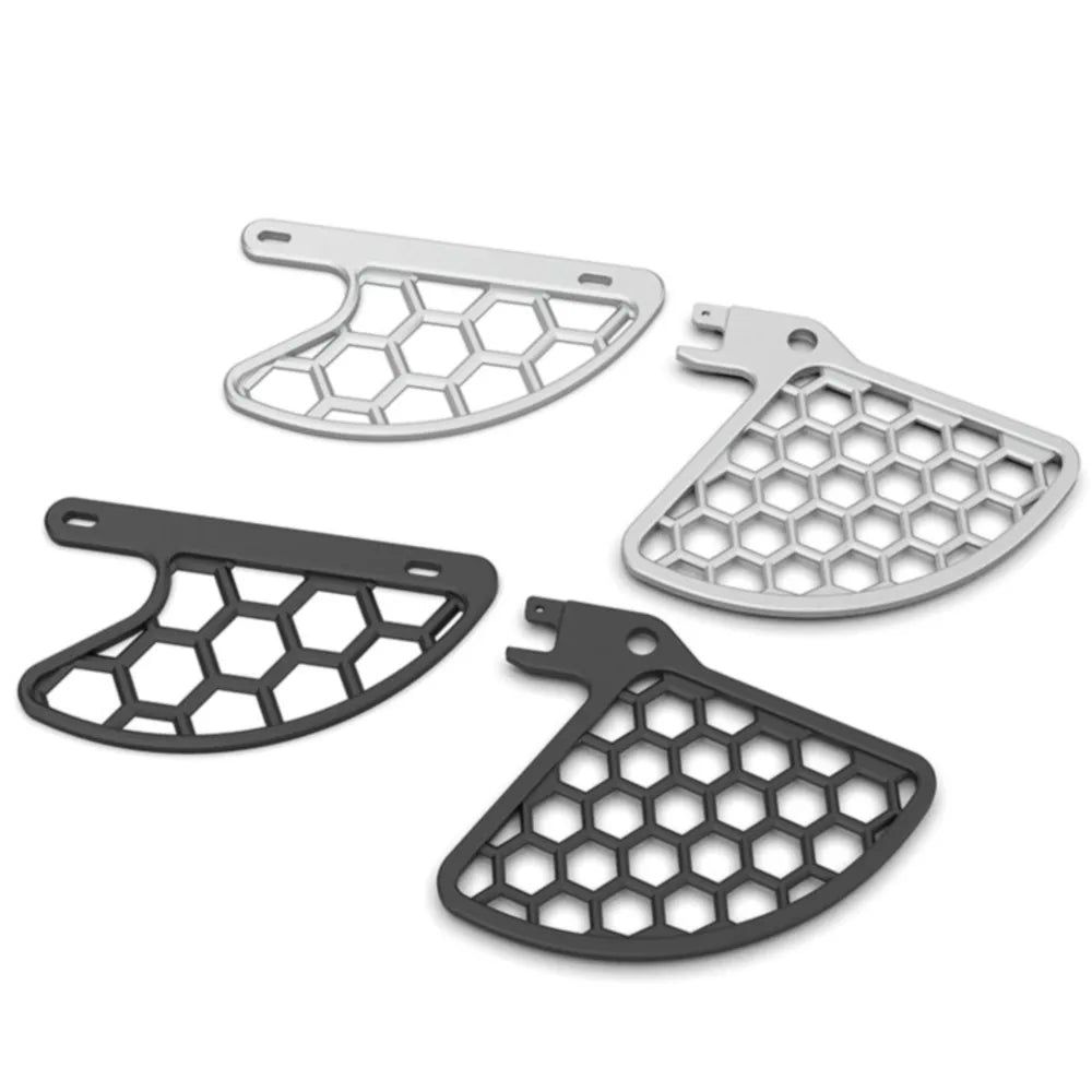 -CNC Brake Caliper Support With Brake Disc Guard. -The integrated brake disc guard protects the rear brake disc from stones and other solid objects in the event of a crash or in the heat of battle. -This Brake Caliper Support Disc Guard Protector is made from high strength Aluminium with beautiful Powder Coated surface finishing.