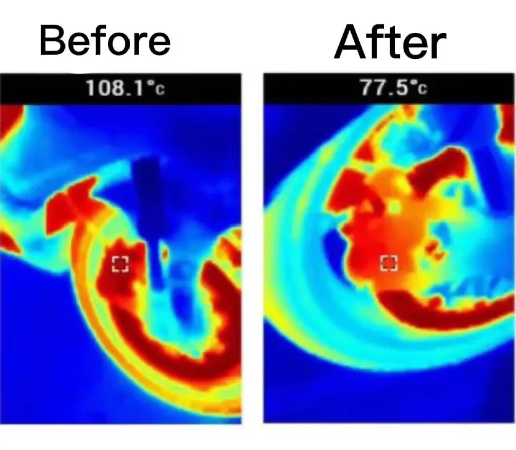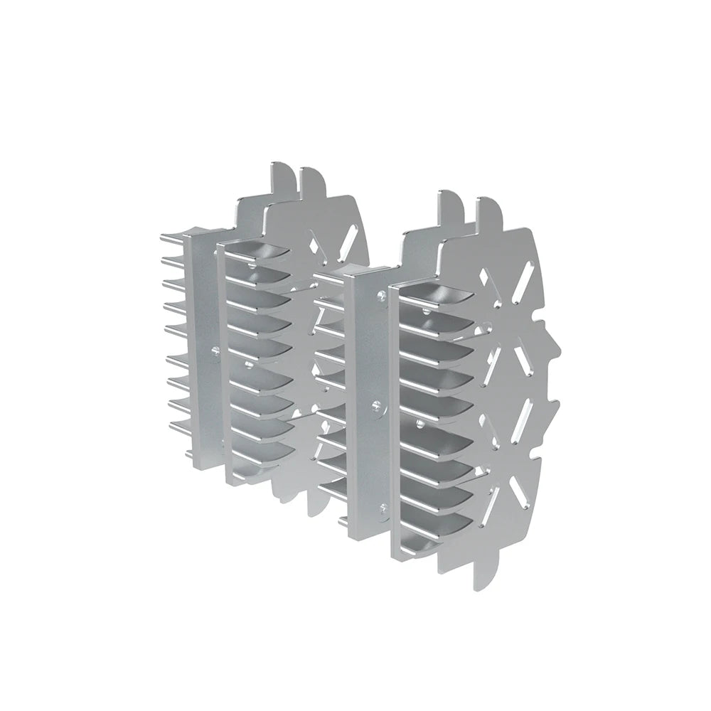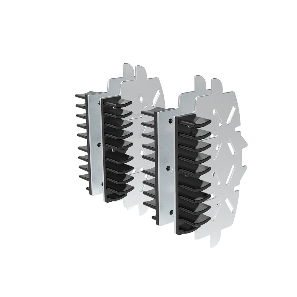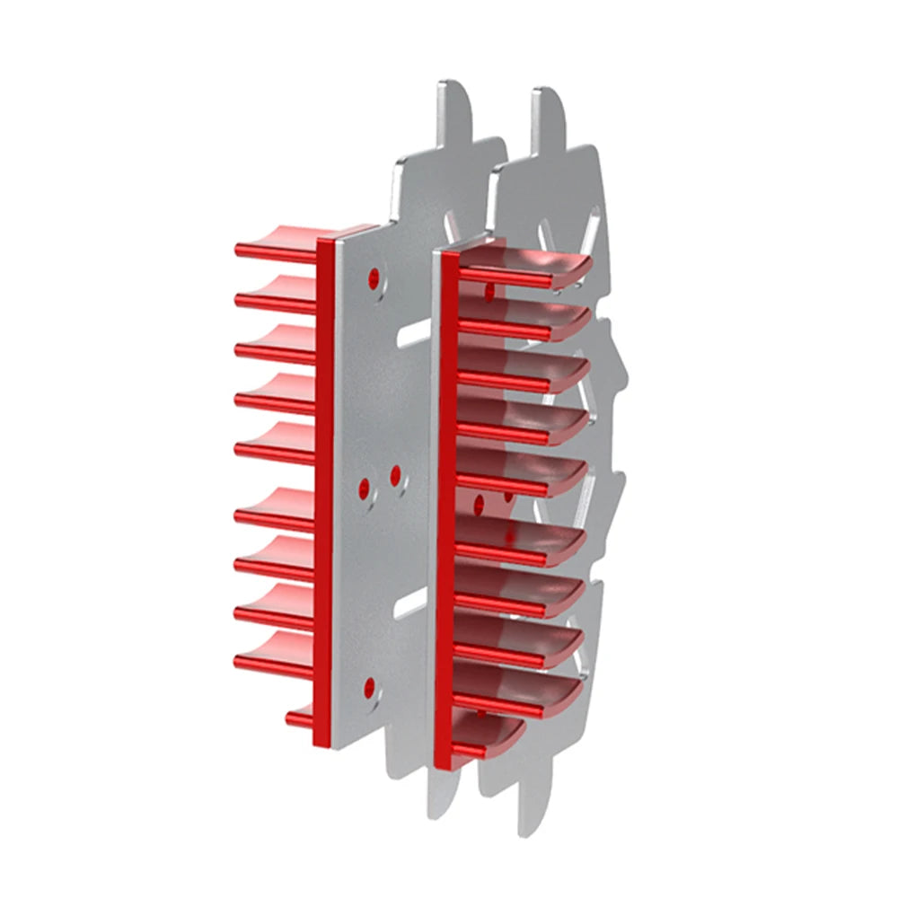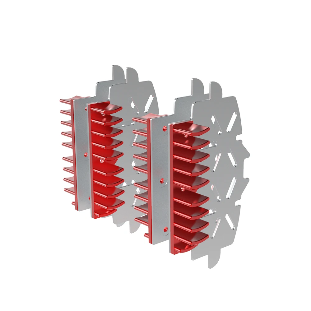 The main body of our heat sink is made of a special thermal steel with a high degree of heat conductivity. The material is first laser cut and then CNC machined in our workshops, the slots have two purposes, the first to reduce the contact surface, the second to release the hot air formed inside the brake piston cavity by reducing the hot chamber effect, and the propagation of heat in the piston and oil. The main body of the steel sink is connected to a light alloy heatsink made of a special aluminum with high thermal conductivity, which has the task of assisting the process of heat dissipation.