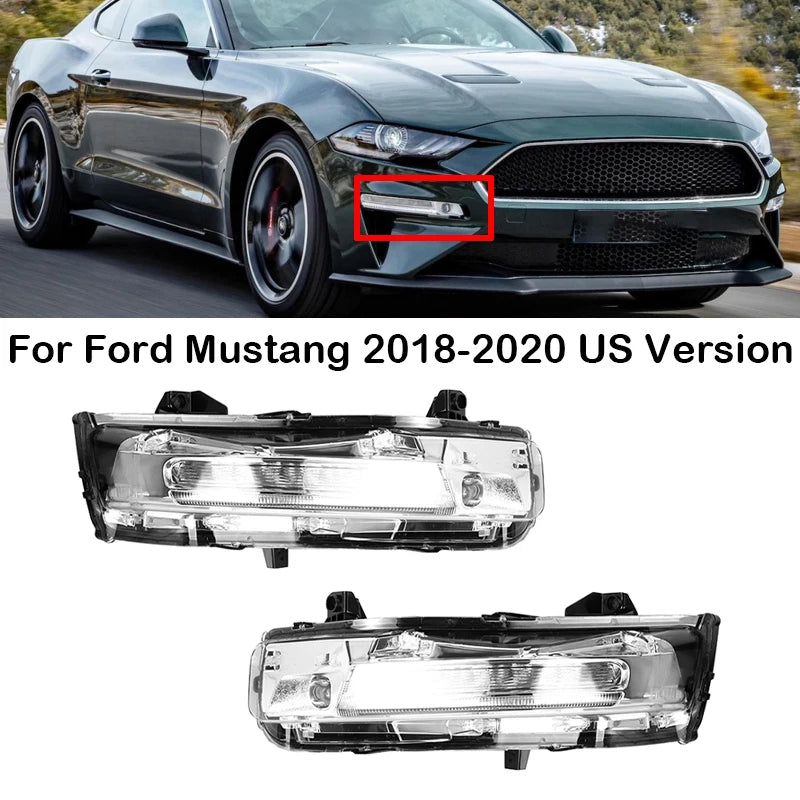 For Ford Mustang 2018 2019 2020 US Version LED Car Front Bumper Fog Light Fog Lamp DRL Daytime Running Lights Turn Signal Light