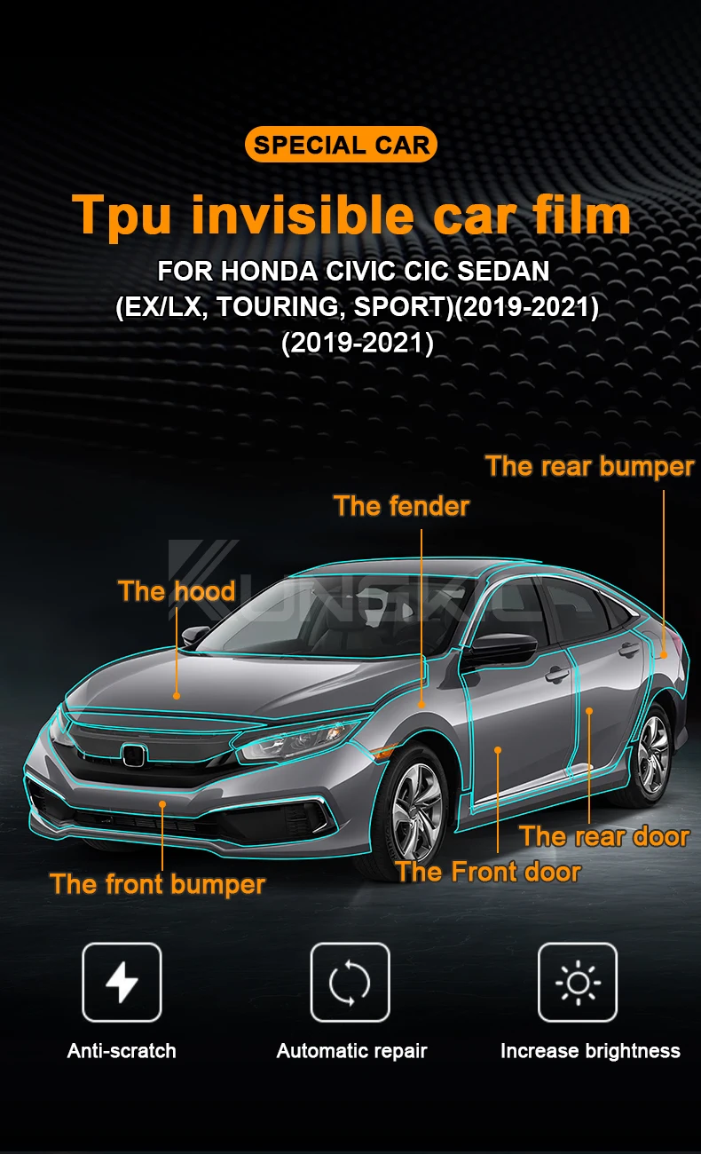 for HONDA CIVIC CIC SEDAN 2019 2020 2021 Car Transparent Kit Body Film Pre Cut Tpu Ppf Clear Sticker Car Paint Protection Film