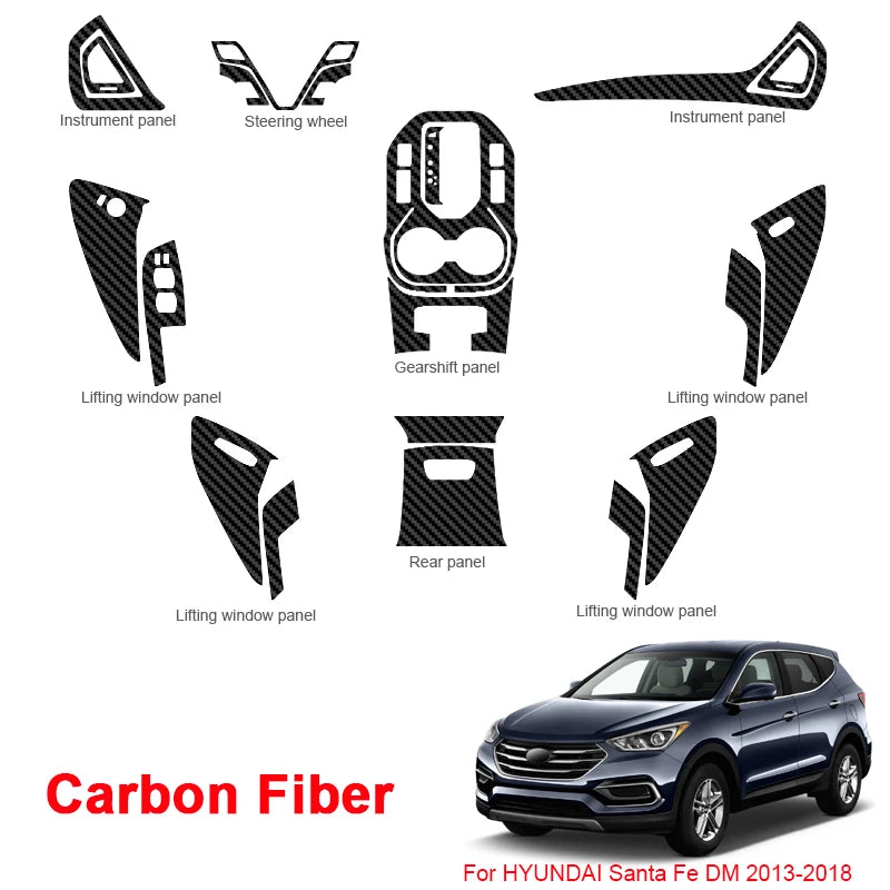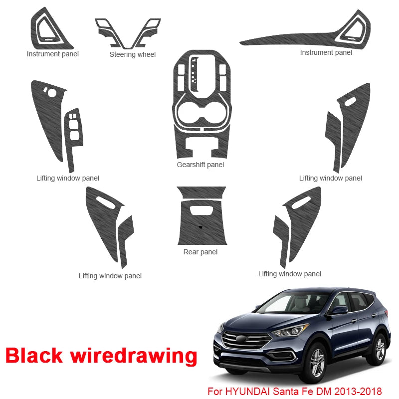 For Hyundai Sante Fe IX45 DM 2013-2018 Car Interior Sticker Lifting Window Panel Decal Gear Box Dashboard Film Auto Accessory