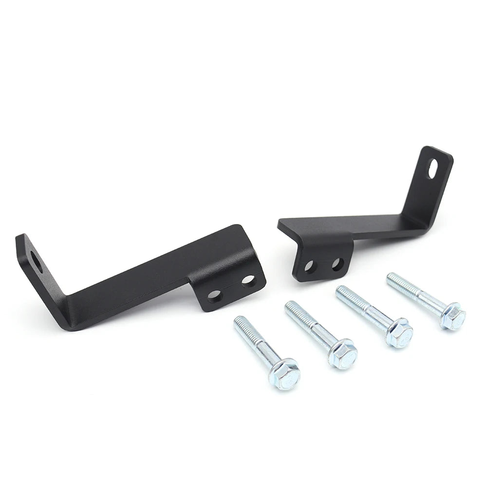 This vehicle-specific driving light mount allows you to mount driving lights in the optimum location for visibility on your Gen 3 KLR 650. The design features a heavy-duty steel brackets that securely mounts to the KLR's lower triple tree. The bracket has an M8 mounting hole for the light pods and includes all necessary mounting hardware.