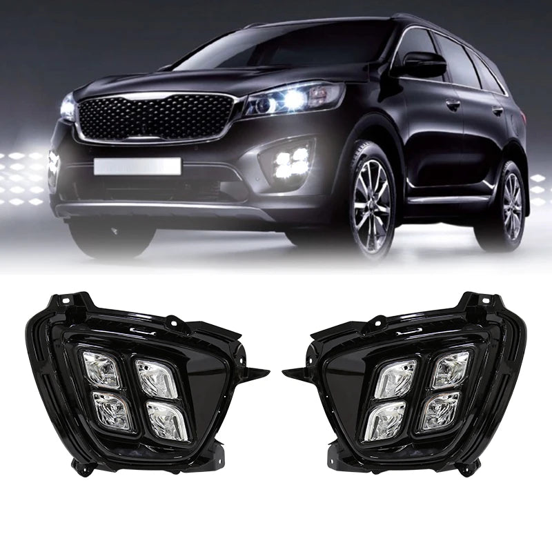 1 Set Daytime Running Lights For Kia Sorento 2015 2016 2017 LED DRL Fog Lamps Cover Driving Lights Accessories Korean Type