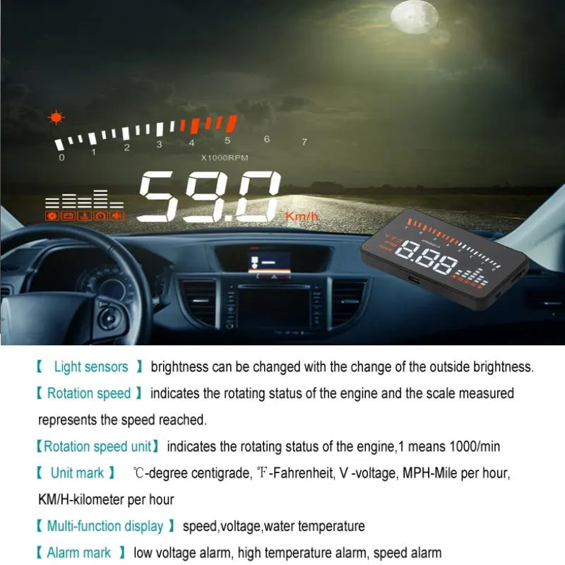 This HUD is designed to reflect your vehicles computer information onto your windshield,