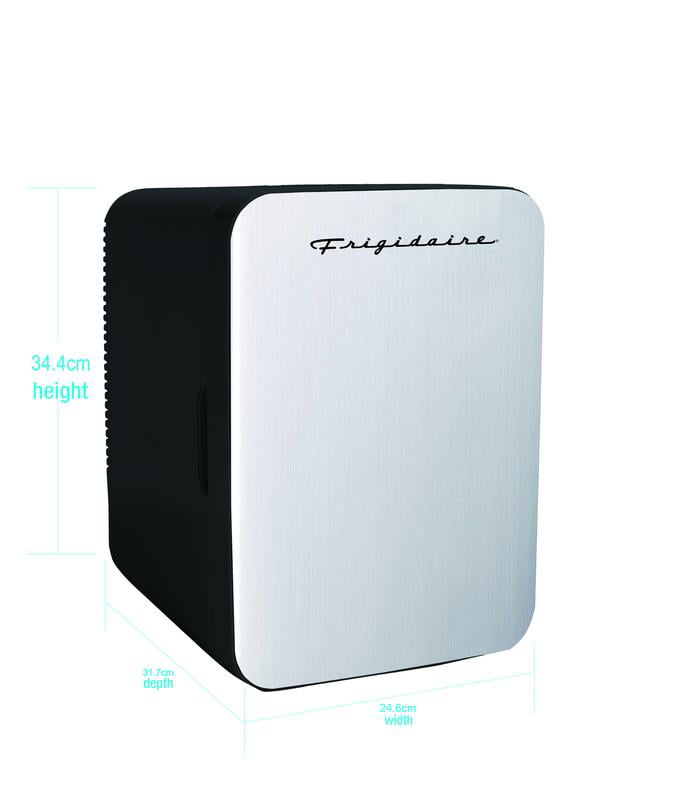 This silver stainless steel compact refrigerator keeps drinks, snacks, small meals, and skincare products ice-cold, with a fun, retro-inspired design that infuses a little fun into everyday life. The Frigidaire mini-fridge is built to last, using the same robust technology that has made Frigidaire one of the most trusted names in household appliances for nearly a century. Two shelves allow for storing multiple items, and an in-door shelf allows you to easily store any sheet mask when using it as a skincare fridge. A vintage logo enhances the nostalgia-inspired look and feel.