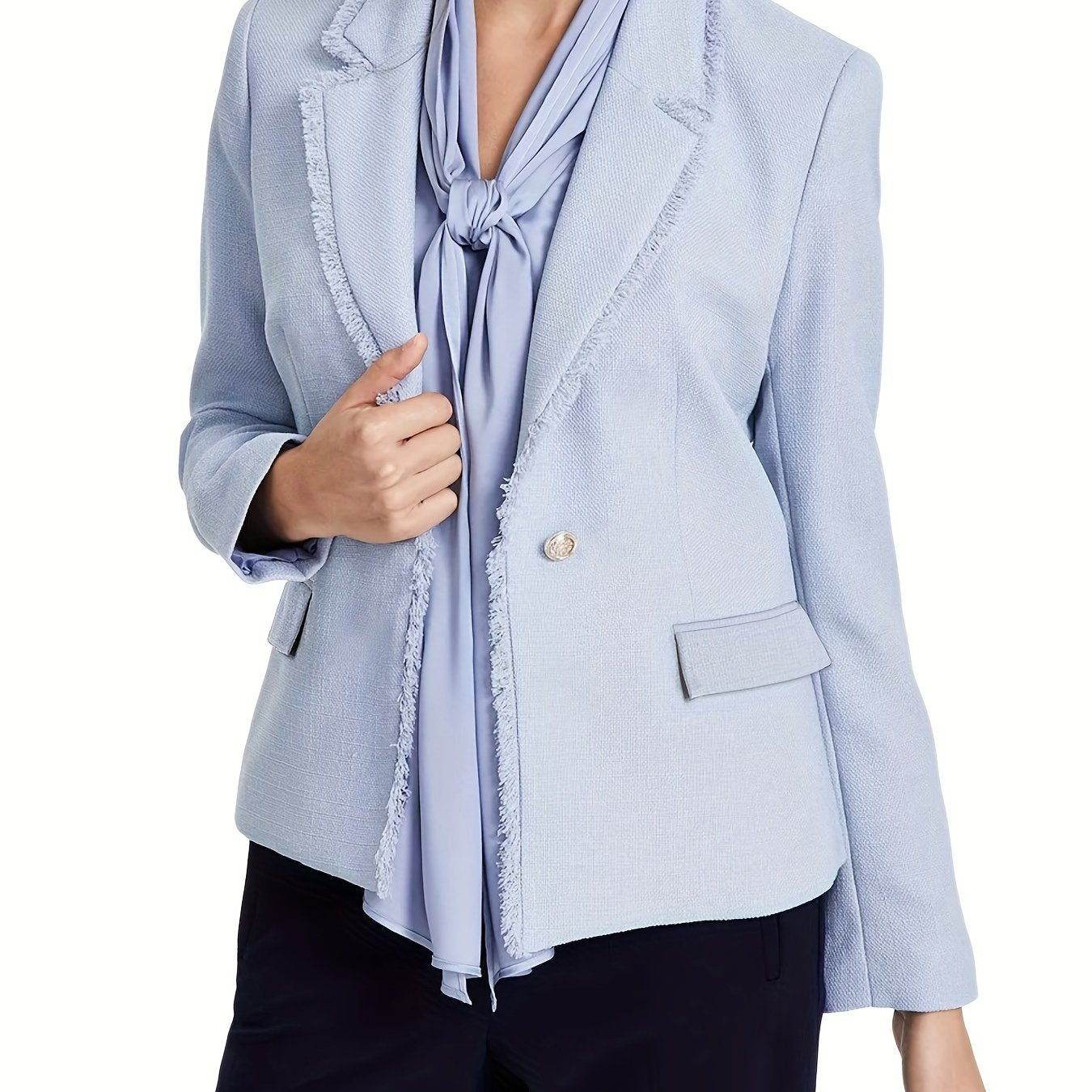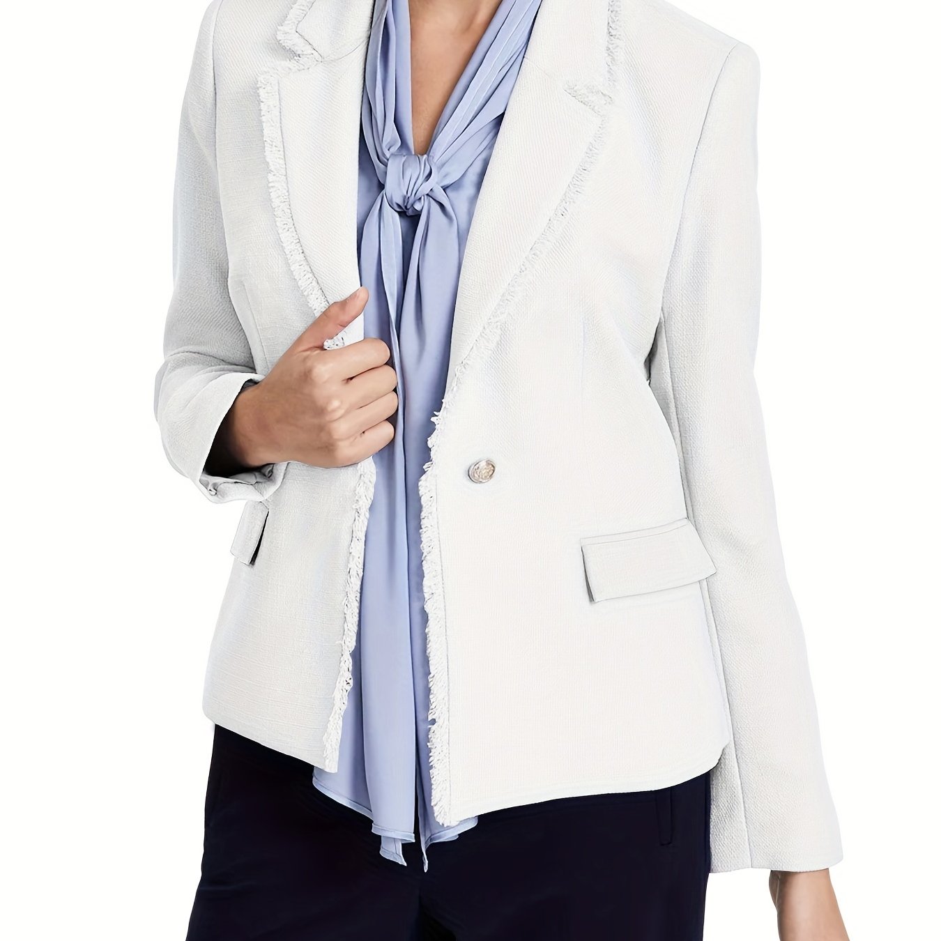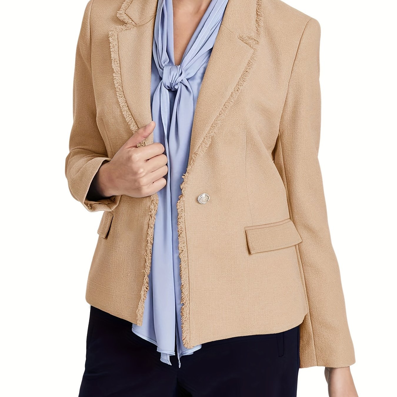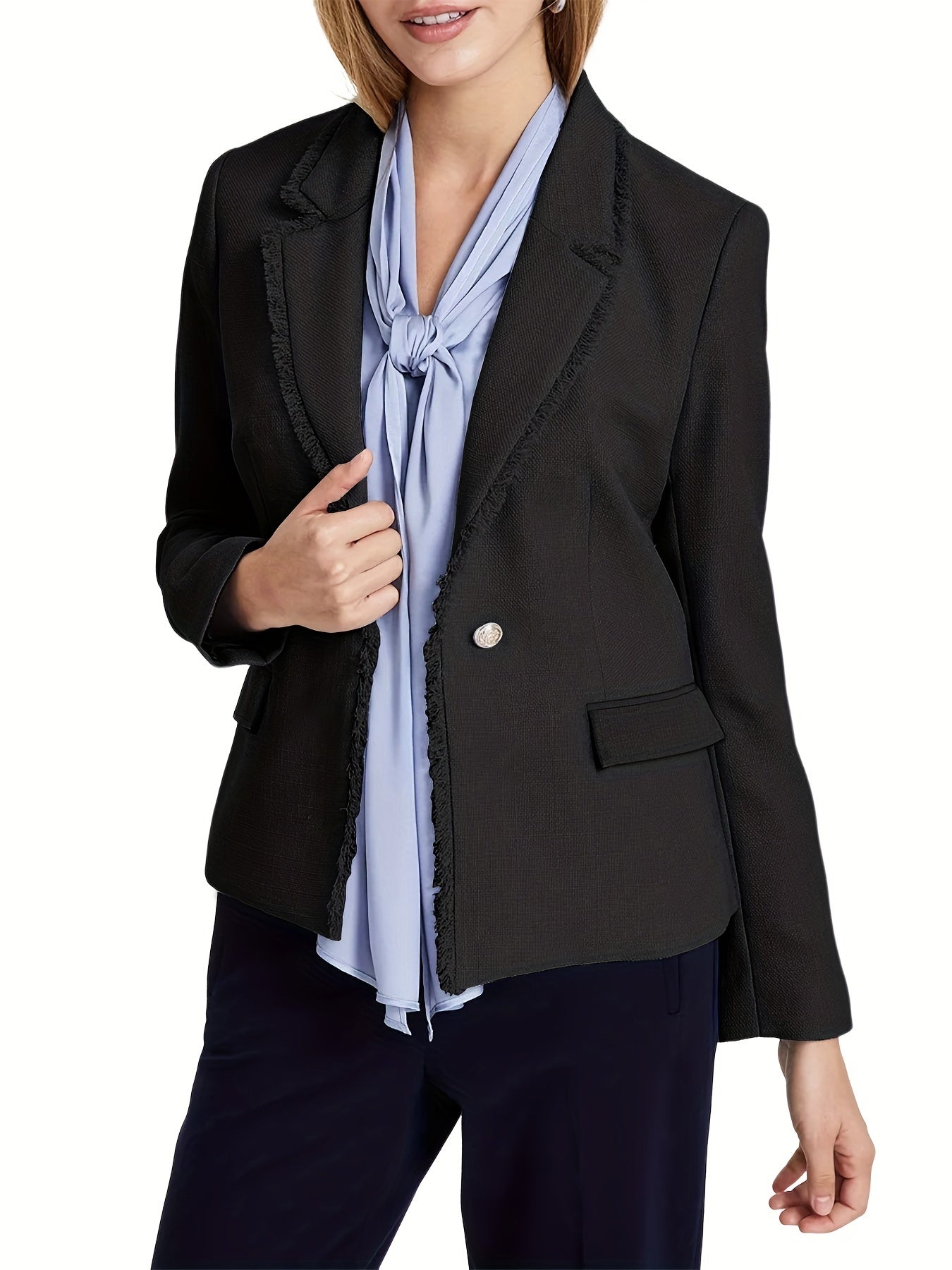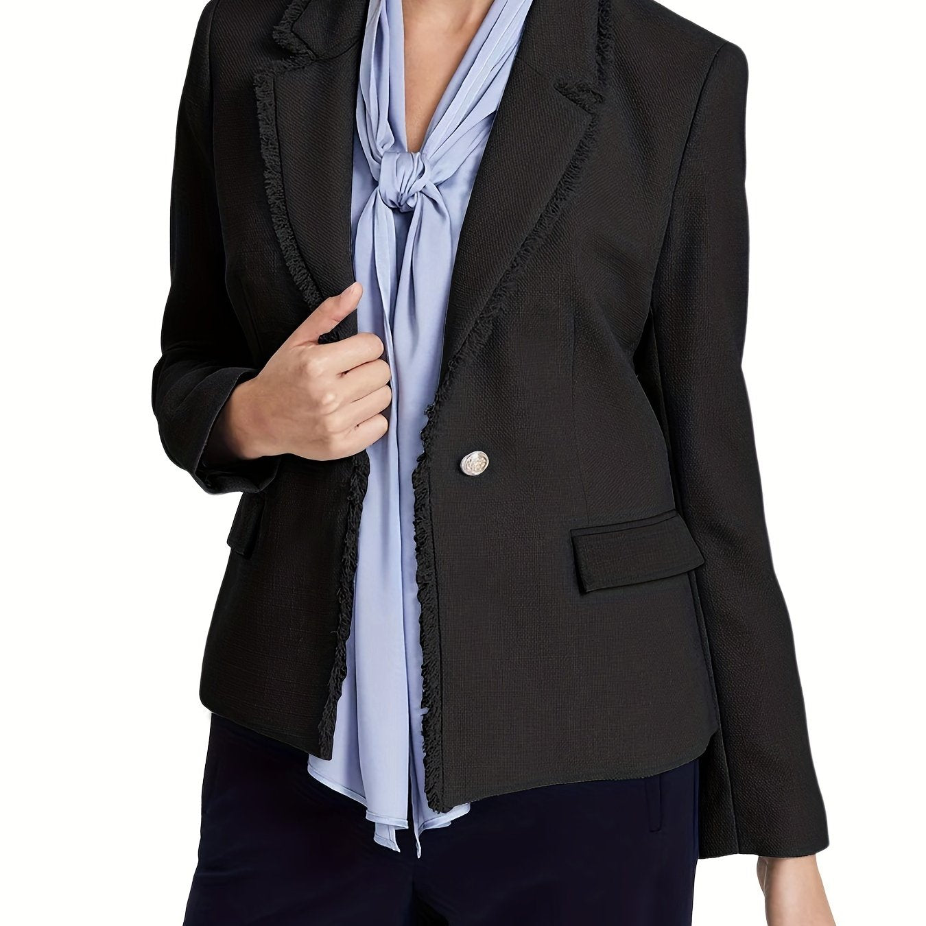 Fringe Lapel Blazer, Elegant Solid Long Sleeve Outerwear, Women's Clothing