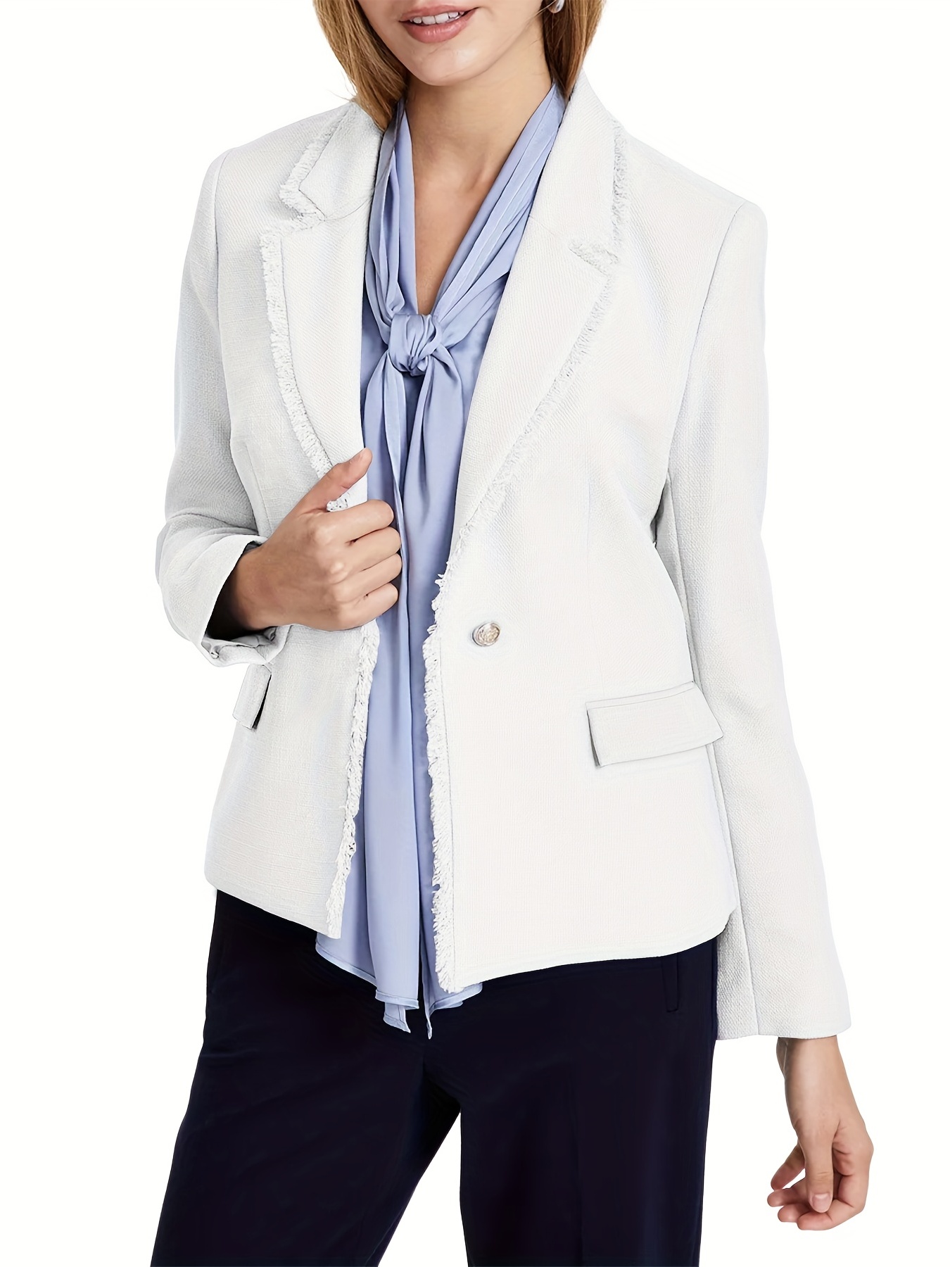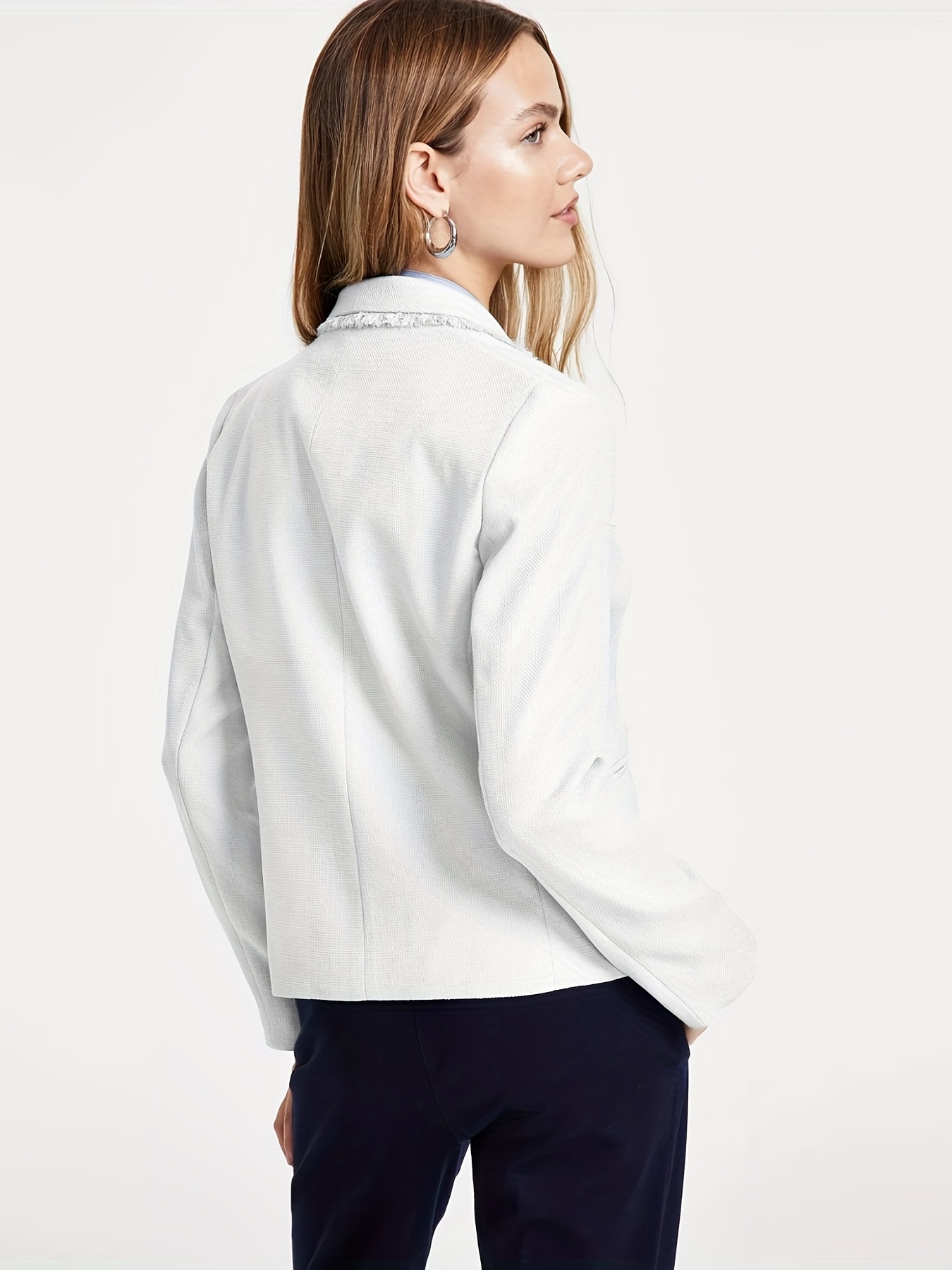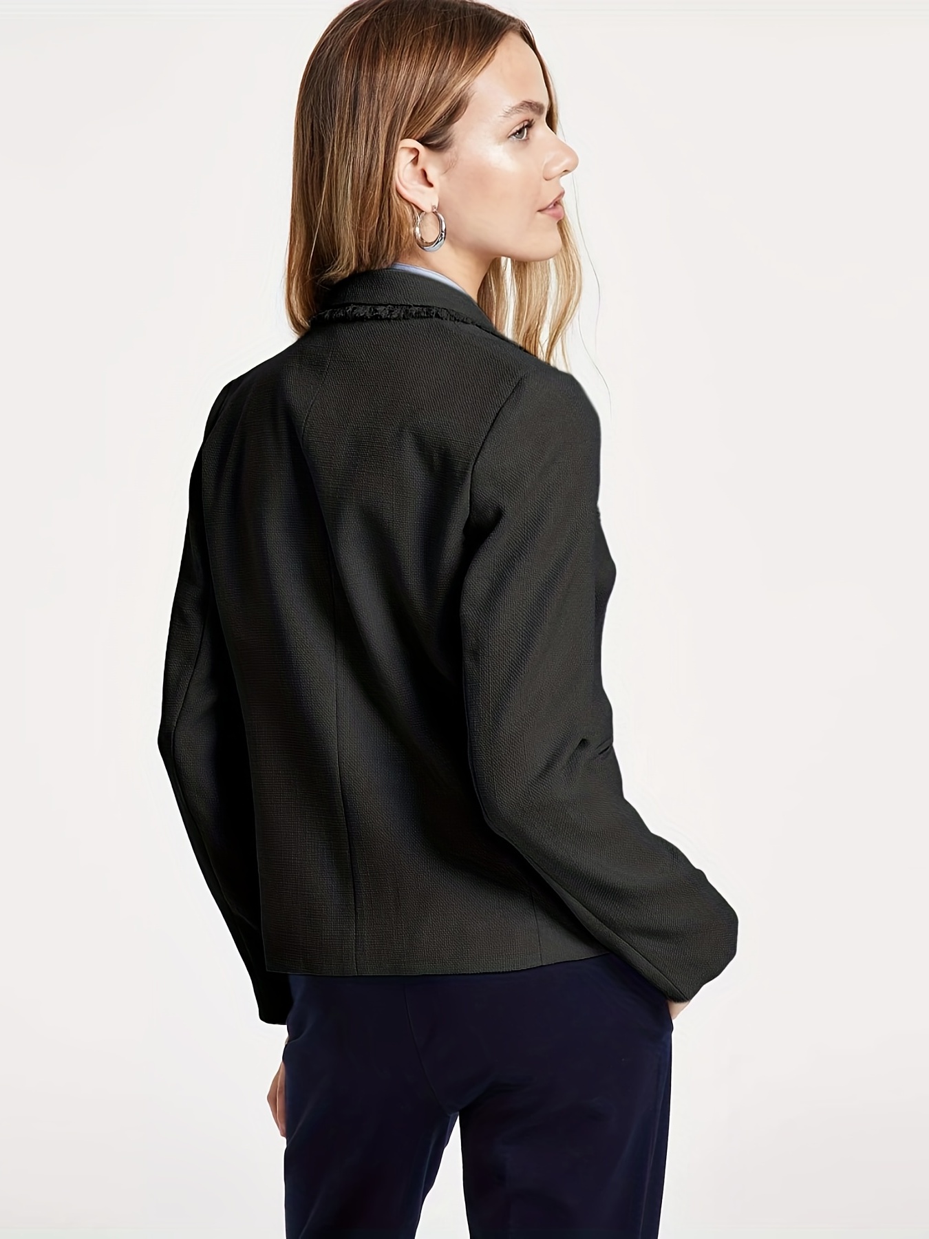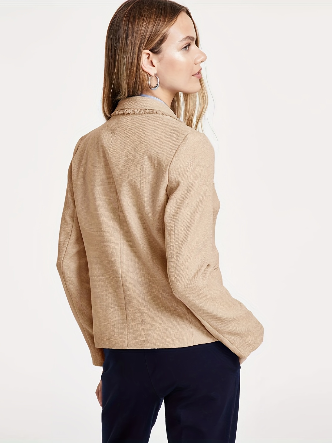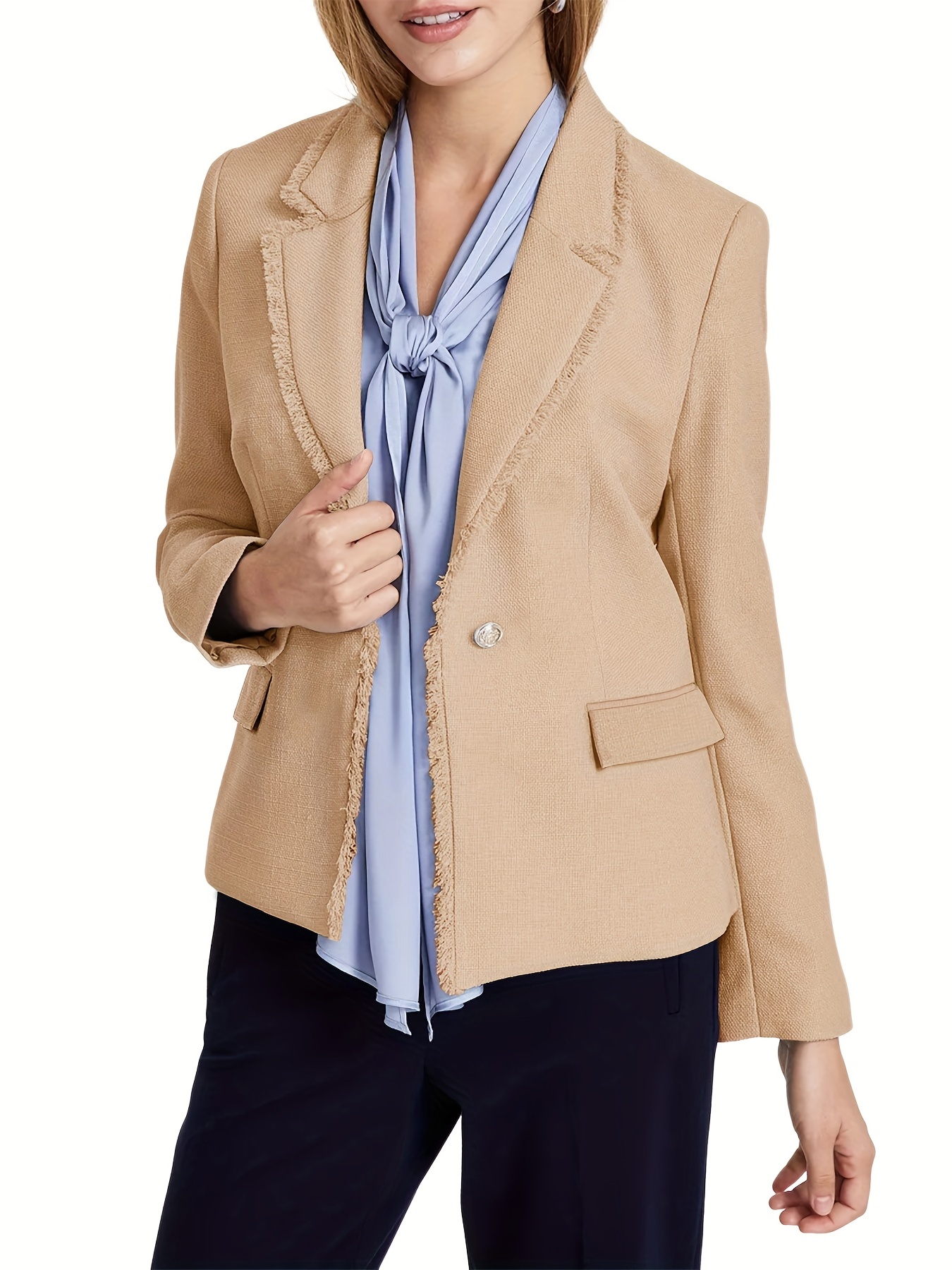 Fringe Lapel Blazer, Elegant Solid Long Sleeve Outerwear, Women's Clothing