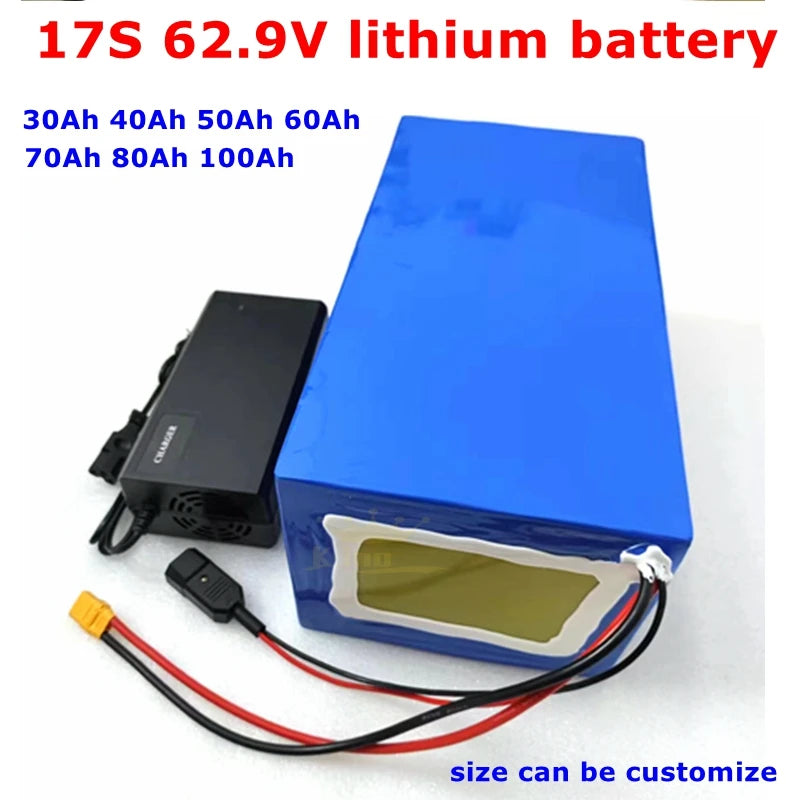 60v 80ah 40Ah 62.9V 100Ah li-ion battery BMS 17S 30Ah 62.9V 50Ah 60Ah lithium for 3000w scooter bicycle motorcycle + charger