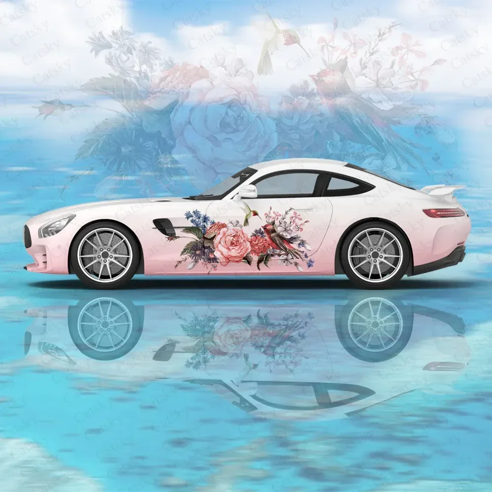 Funny Flowers and Birds Car Wrap Protect Stickers Car Decal Creative Sticker Car Body Appearance Modification Decorative Sticker