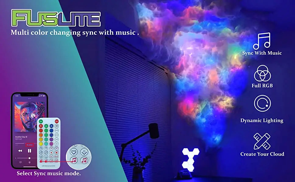 Fuslite Led Cloud Light, LED Thundercloud Colorful Atmosphere Night Light 16 Feet/32 Feet